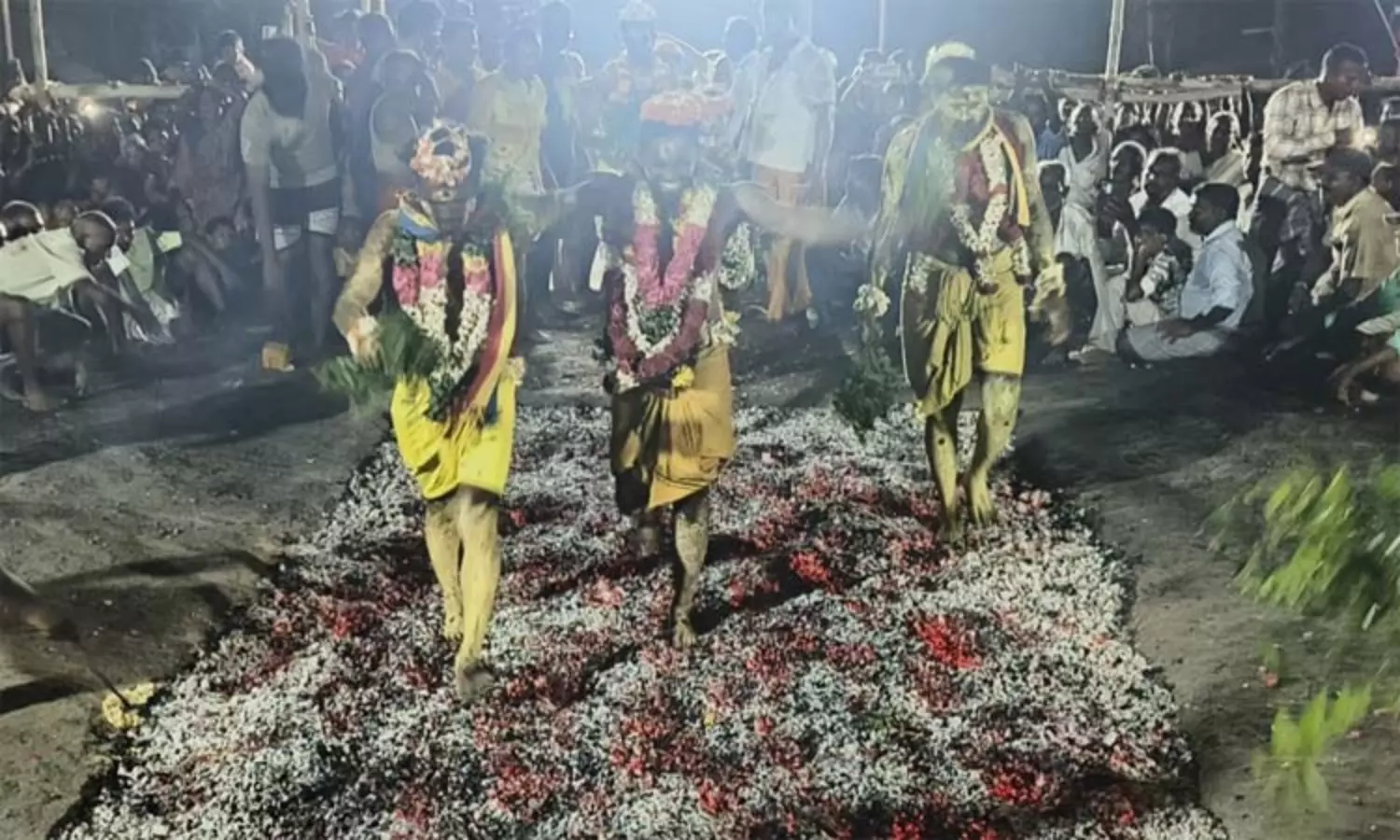 முக்கிய நிகழ்ச்சியான தீ மிதித்தல் நிகழ்ச்சி நேற்று இரவு நடைபெற்றது. 200-க்கும் மேற்பட்ட பக்தர்கள் கோவில் அருகே உள்ள குளத்தில் புனித நீராடி, அதன்பின் தீ மிதித்து நேர்த்திக்கடன் செலுத்தினர். இதில் பாலவாக்கம், லட்சிவாக்கம், சென்னங்காரணை, சூளைமேனி, தாராட்சி பகுதிகளில் இருந்து ஏராளமான பக்தர்கள் கலந்து கொண்டனர்.