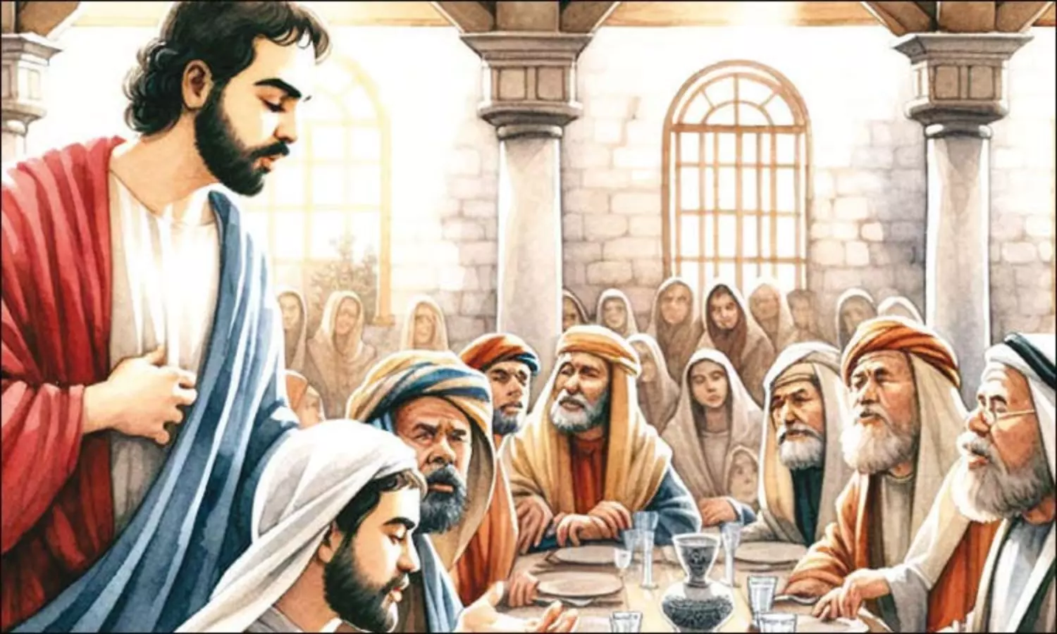 ஒருமுறை இயேசுவை ஒருவர் தன் வீட்டிற்கு உணவருந்த அழைத்திருந்தார். அங்கு வந்திருந்த மற்றவர்கள் முதன்மையான இருக்கைக்காகத் தங்களுக்குள் போட்டிப் போட்டுக்கொண்டனர். அதைப் பார்த்த இயேசு, அவர்களுக்கு இவ்வாறு அறிவுரை கூறினார்: