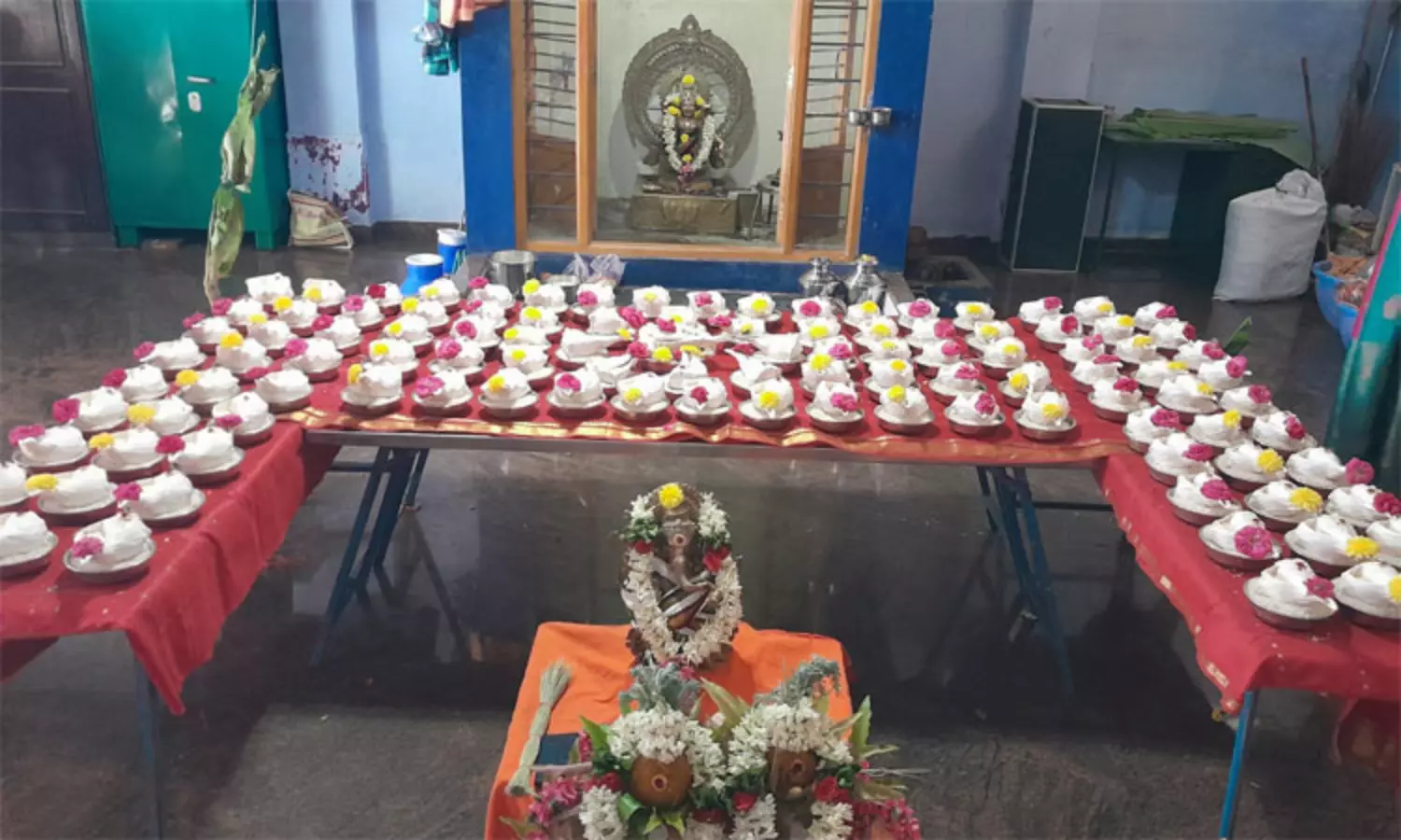 சங்குகளில் புனித நீரை நிரப்பி புஷ்பங்கள் வைத்து பூஜை செய்து பின்பு அந்த நீரைக் கொண்டு இறைவனுக்கு அபிஷேகம் செய்வார்கள்.;