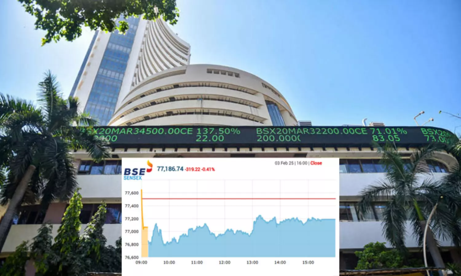 மும்பை பங்குச்சந்தையில் குறியீட்டெண் சென்செக்ஸ் 319.22 புள்ளிகள் சரிந்து, 77,186.74 புள்ளிகளில் வர்த்தகம் நிறைவடைந்தது.;