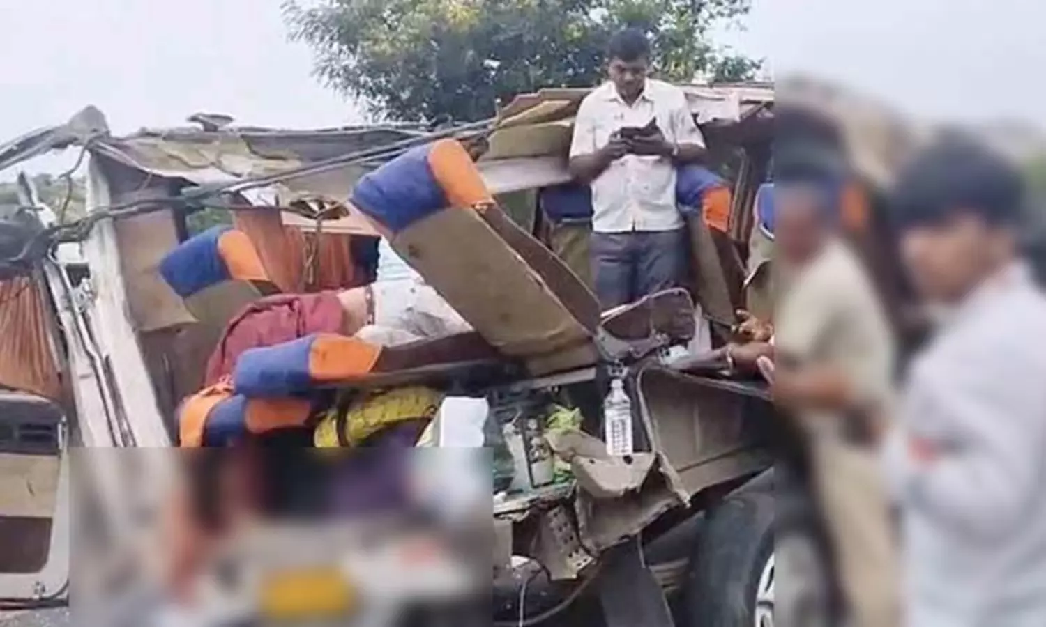 ஆந்திராவின் அன்னமய்யா மாவட்டம் குருபலகொடா பகுதியில் டெம்போ டிராவலர் சென்றபோது எதிரே வேகமாக வந்த லாரி மோதியது. இந்த கோர விபத்தில் டெம்போ டிராவலரில் பயணம் செய்த 3 பேர் சமப்வ இடத்திலேயே உயிரிழந்தனர். மேலும்9 பேர் படுகாயமடைந்தனர்.