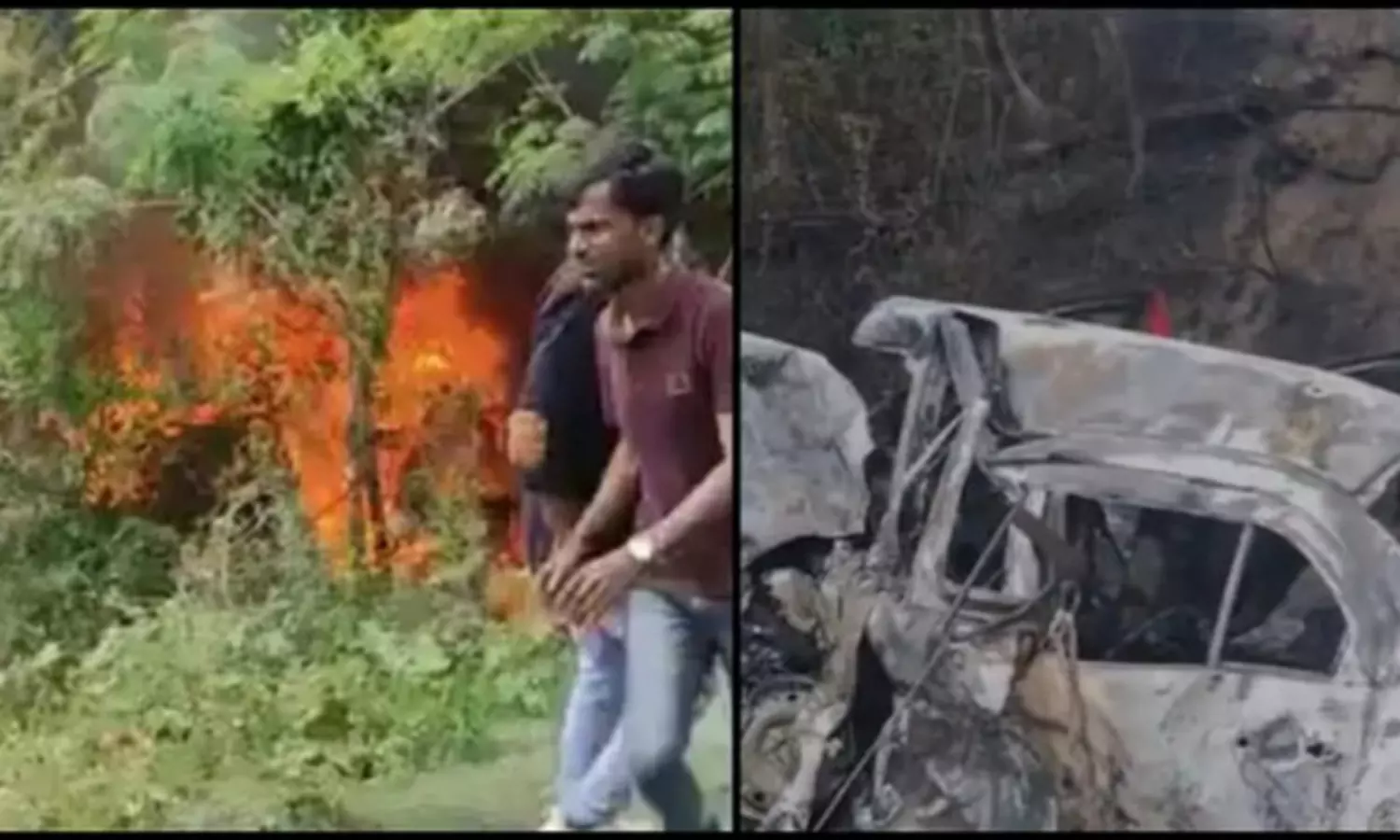 கார்கள் நேருக்கு நேர் மோதி தீப்பற்றி கோர விபத்து; 7 பேர் உடல் கருகி பலி