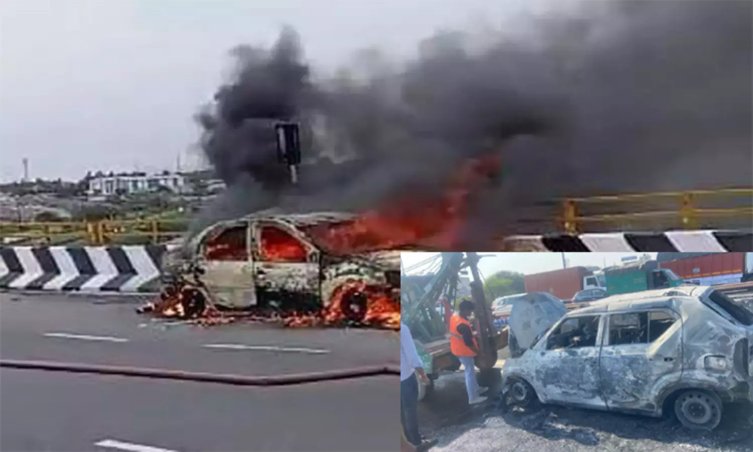 பீகார் மாநிலம் சிக்கந்தர்பூர் கோசியை சேர்ந்தவர் சுனில் குமார். இவர் நேற்று தனது மனைவி மற்றும் 2 குழந்தைகளுடன் காரில் வீடு திரும்பினார். அவர் பிற்பகல் 2.50 மணியளவில் மேம்பாலத்தில் சென்றுகொண்டிருந்தபோது திடீரென காரில் தீ ஏற்பட்டது. அப்போது அங்கு பணியில் இருந்த போக்குவரத்து போலீசார் தீயை கவனித்தவுடன் மீட்பு பணியில் விரைந்தனர்.