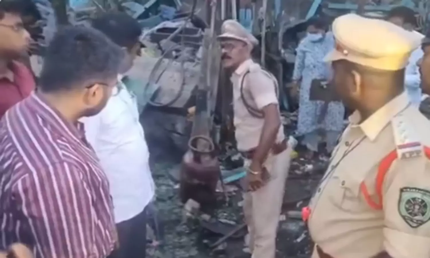 ஆந்திர பிரதேசத்தில் கியாஸ் சிலிண்டர் வெடிவிபத்தில், தீயணைப்பு அதிகாரிகள் மற்றும் போலீசார் உடனடியாக சம்பவ பகுதிக்கு விரைந்தனர்.;