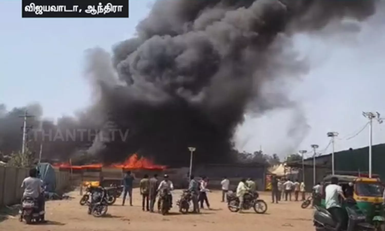 விஜயவாடாவில் நடைபெற்று வரும் பொருட்காட்சியில் இன்று பயங்கர தீ விபத்து ஏற்பட்டது.;
