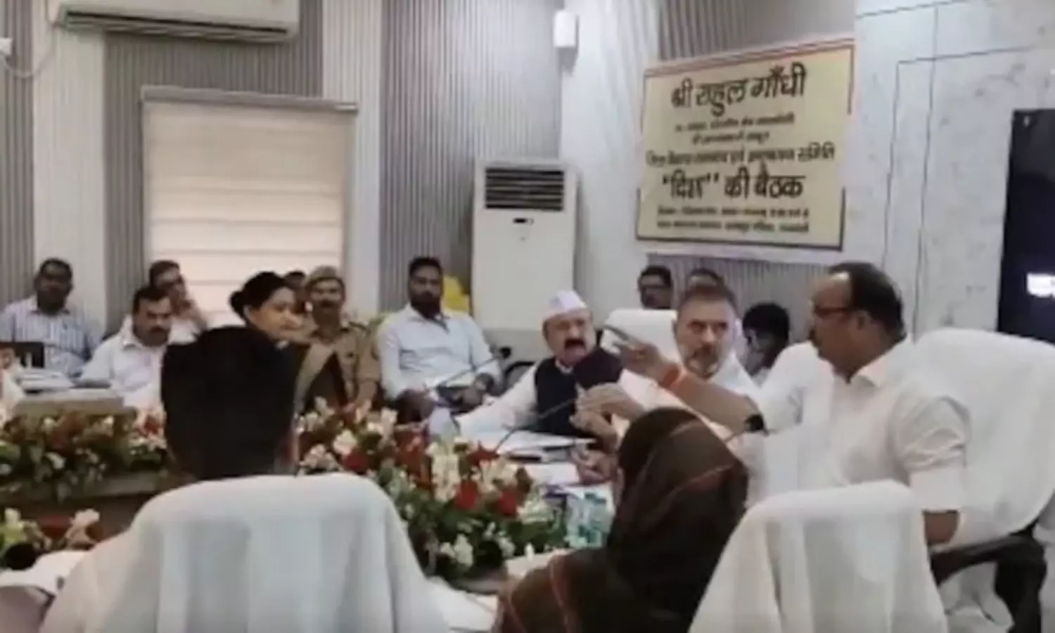 இந்த கூட்டத்தில் அருகருகே அமர்ந்திருந்த ராகுல்காந்தி, மந்திரி தினேஷ் பிரதாப் சிங் இருவருக்கும் இடையே திடீரென கடும் வாக்குவாதம் ஏற்பட்டது. இருவரும் ஆக்ரோஷமாக பேசிக் கொண்டனர். இதுதொடர்பாக வீடியோ காட்சிகள் சமூகவலைத்தளங்களில் வெளியாகி பரபரப்பை ஏற்படுத்தி உள்ளன.