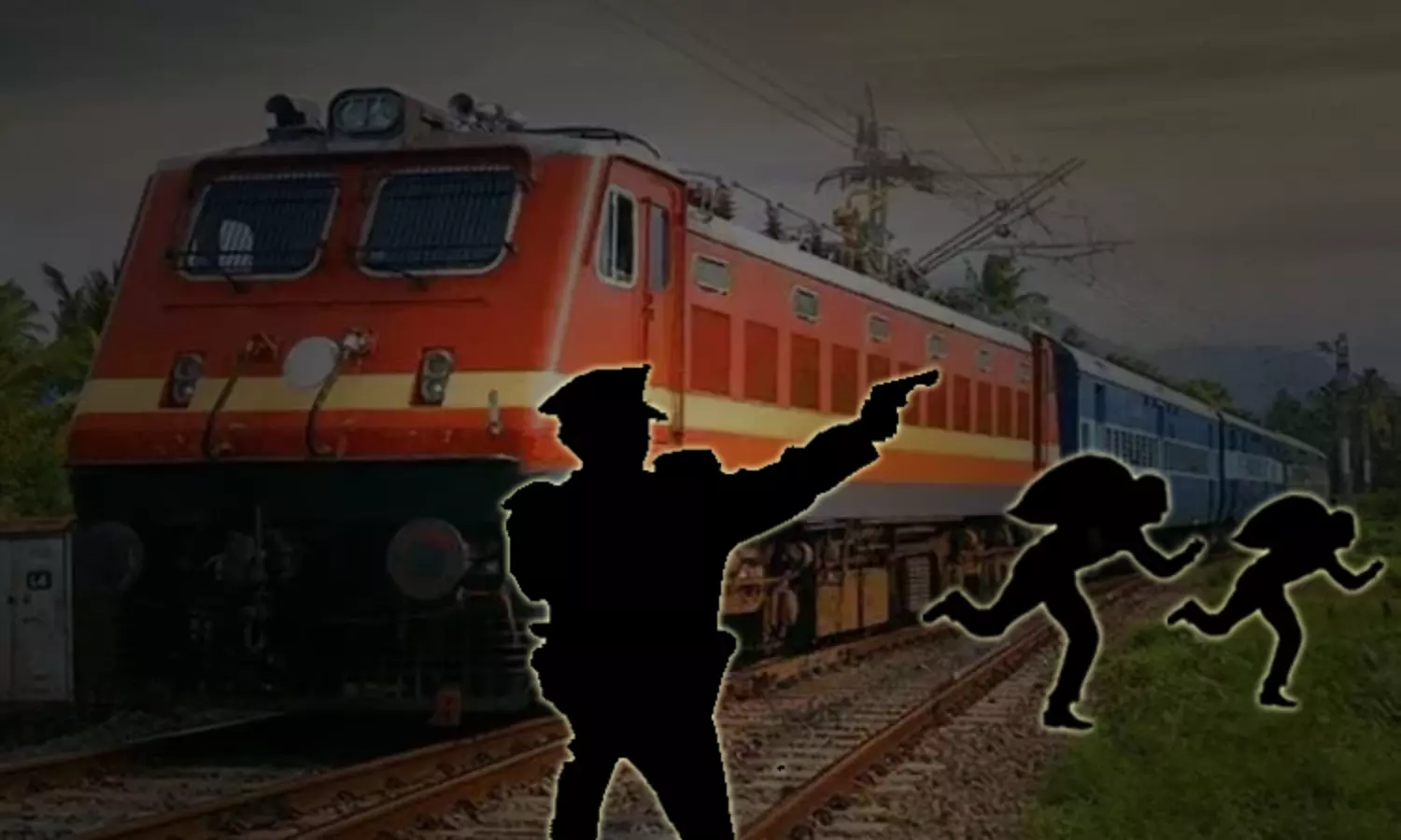 இது குறித்து விசாரிக்க ரெயிலில் பணியில் இருந்த போலீசார் சம்பந்தப்பட்ட பெட்டிக்கு அருகே சென்றனர். போலீசார் வருவதைப் பார்த்து 2 நபர்கள் ரெயிலில் இருந்து இறங்கி ஓடினர். மேலும் அவர்கள் போலீசார் மீது கற்களை தூக்கி வீசினர். போலீசார் தற்காப்புக்காக தங்களிடம் இருந்த துப்பாக்கியை எடுத்து வானை நோக்கி இரண்டு முறை சுட்டனர். இருப்பினும் திருடர்கள் இருவரும் அருகில் இருந்த வயல்வெளிக்குள் புகுந்து ஓடி மறைந்தனர்.