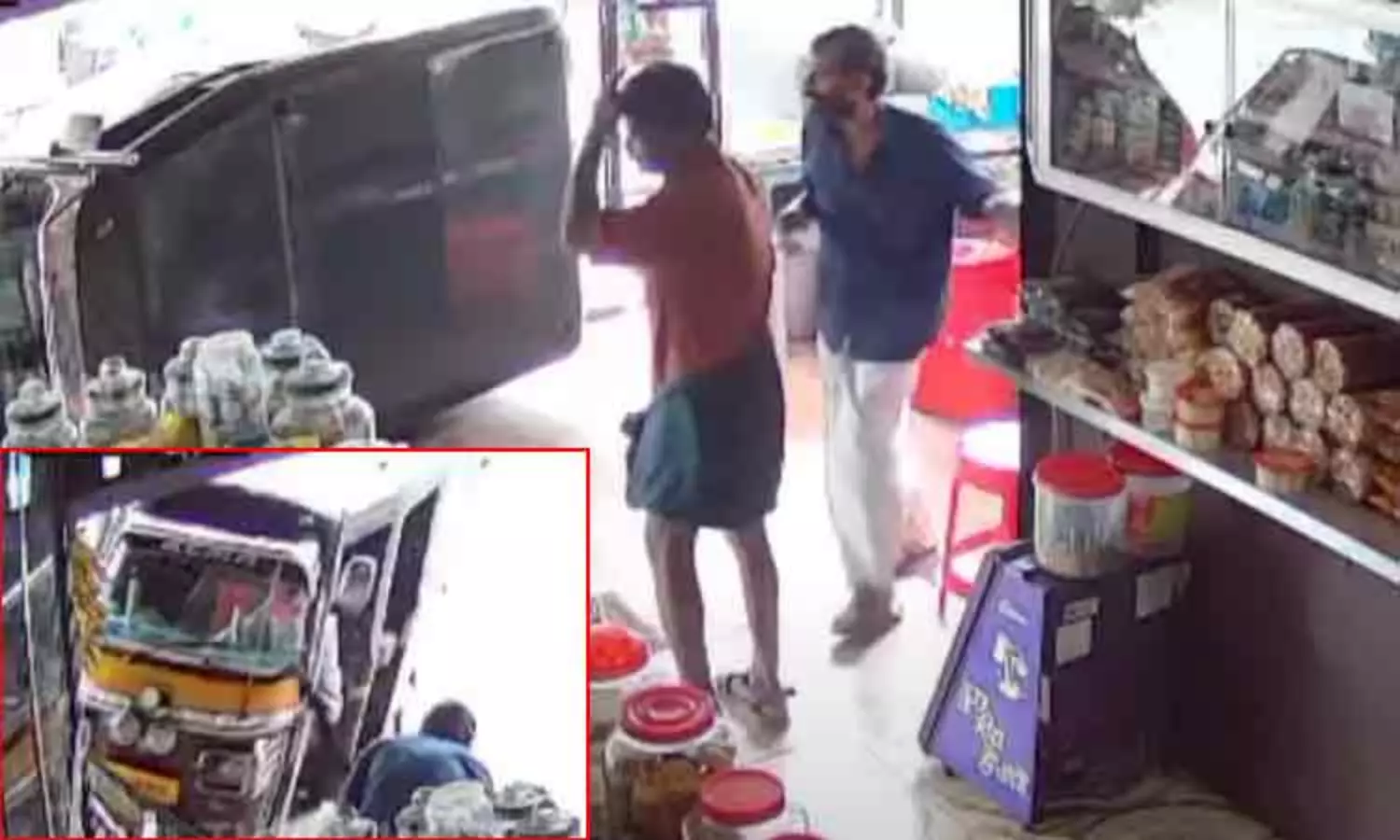 கேரள மாநிலம் பாலக்காடு மாவட்டம் ஒற்றப்பாலம் அம்பலப்பாறையில் அதிகாலை சாரல் மழை பெய்ந்து கொண்டிருந்தது. இந்த நிலையில், அப்பகுதியில் ஆட்டோ ஒன்று வேகமாக சாலையில் வந்ததுகொண்டிருந்தது. அப்போது திடீரென டிரைவரின் கட்டுப்பாட்டை இழந்த ஆட்டோ அருகில் இருந்த பேக்கரி கடைக்கும் நுழைந்தது. பின்னர் ஆட்டோ கவிழ்ந்தது. இதில் டிரைவர் ஆட்டோவில் சிக்கிக்கொண்டார்.