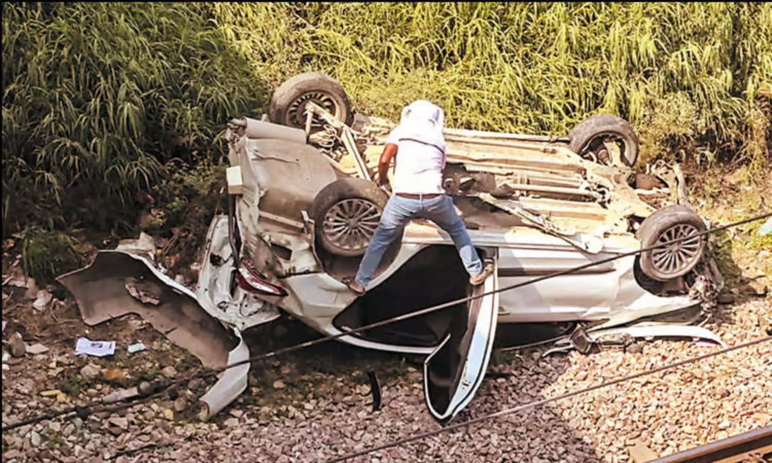 டெல்லி: மேம்பாலத்தில் இருந்து ரெயில் தண்டவாளம் அருகே விழுந்த கார்