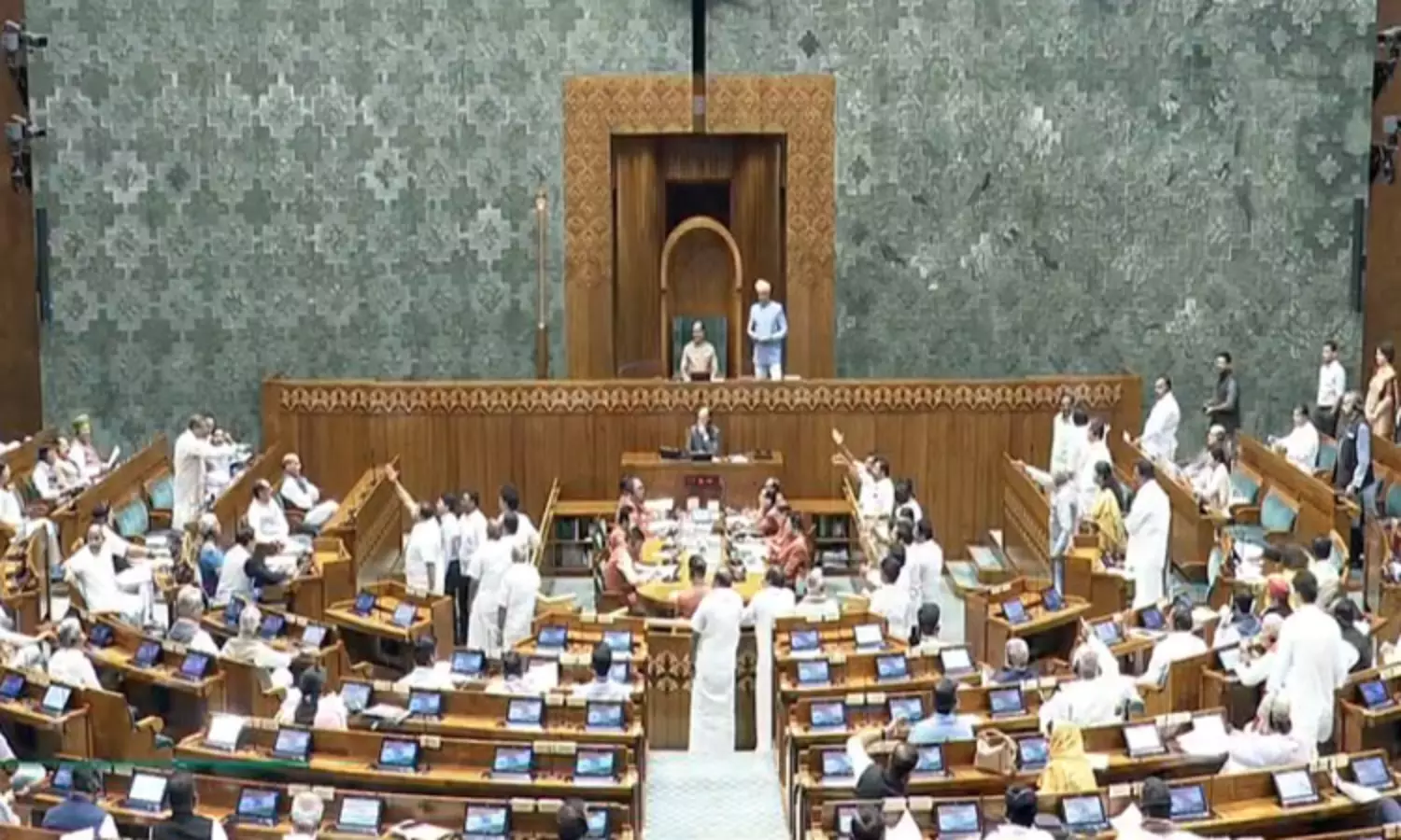 மத்திய கல்வி மந்திரி தர்மேந்திர பிரதானின் பதிலை ஏற்க மறுத்து தி.மு.க. எம்.பி.க்கள் மக்களவையில் முழக்கம் எழுப்பினர். இதனால் மக்களவையில் கடும் அமளி ஏற்பட்டது. இதையடுத்து மக்களவை மதியம் 12 மணி வரை ஒத்திவைக்கப்படுவதாக சபாநாயகர் ஓம் பிர்லா அறிவித்தார்.