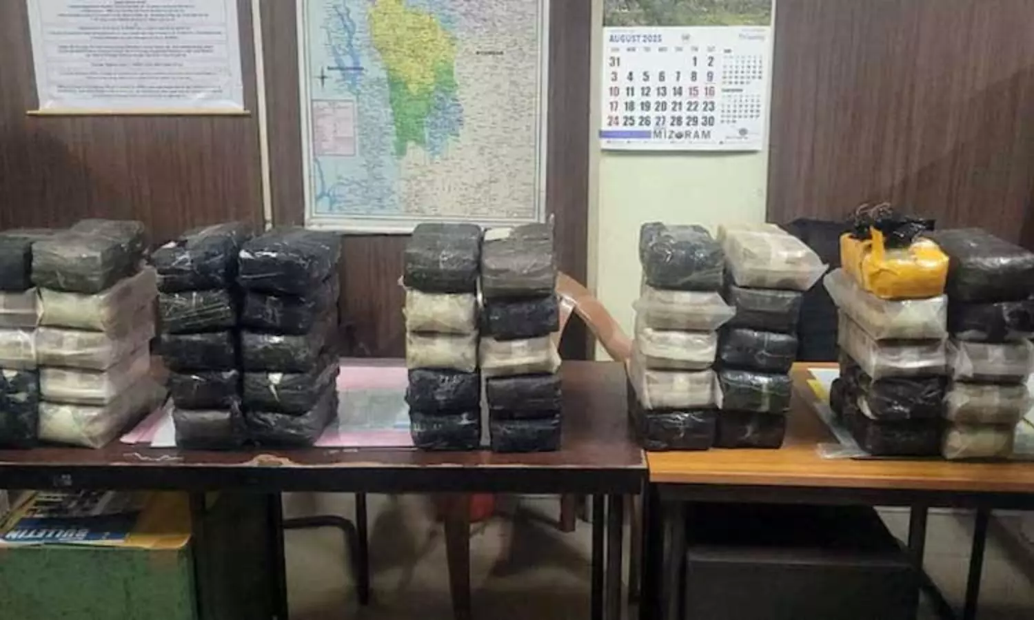 மிசோரம் மாநில கலால் மற்றும் போதைப்பொருள் துறை, போதைப்பொருள் கட்டுப்பாட்டுப் பணியகம்(NCB) மற்றும் எல்லை பாதுகாப்புப் படை(BSF) ஆகியவற்றை சேர்ந்த அதிகாரிகள் இணைந்து, கீபாங் மற்றும் செலிங் ஆகிய பகுதிகளுக்கு இடையே உள்ள தேசிய நெடுஞ்சாலையில் தீவிர வாகன சோதனை நடத்தினர்.