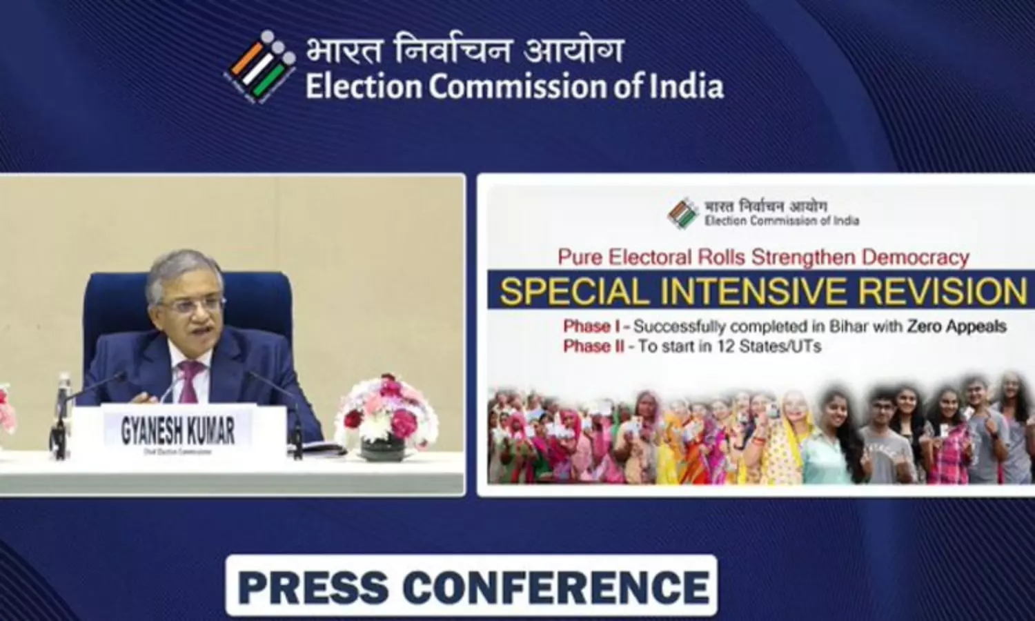 இந்த நிலையில், சிறப்பு தீவிர வாக்காளர் திருத்தம் தொடர்பாக டெல்லியில் இந்திய தலைமை தேர்தல் ஆணையர் ஞானேஷ்குமார் செய்தியாளர்கள் சந்திப்பில் கூறியதாவது:-