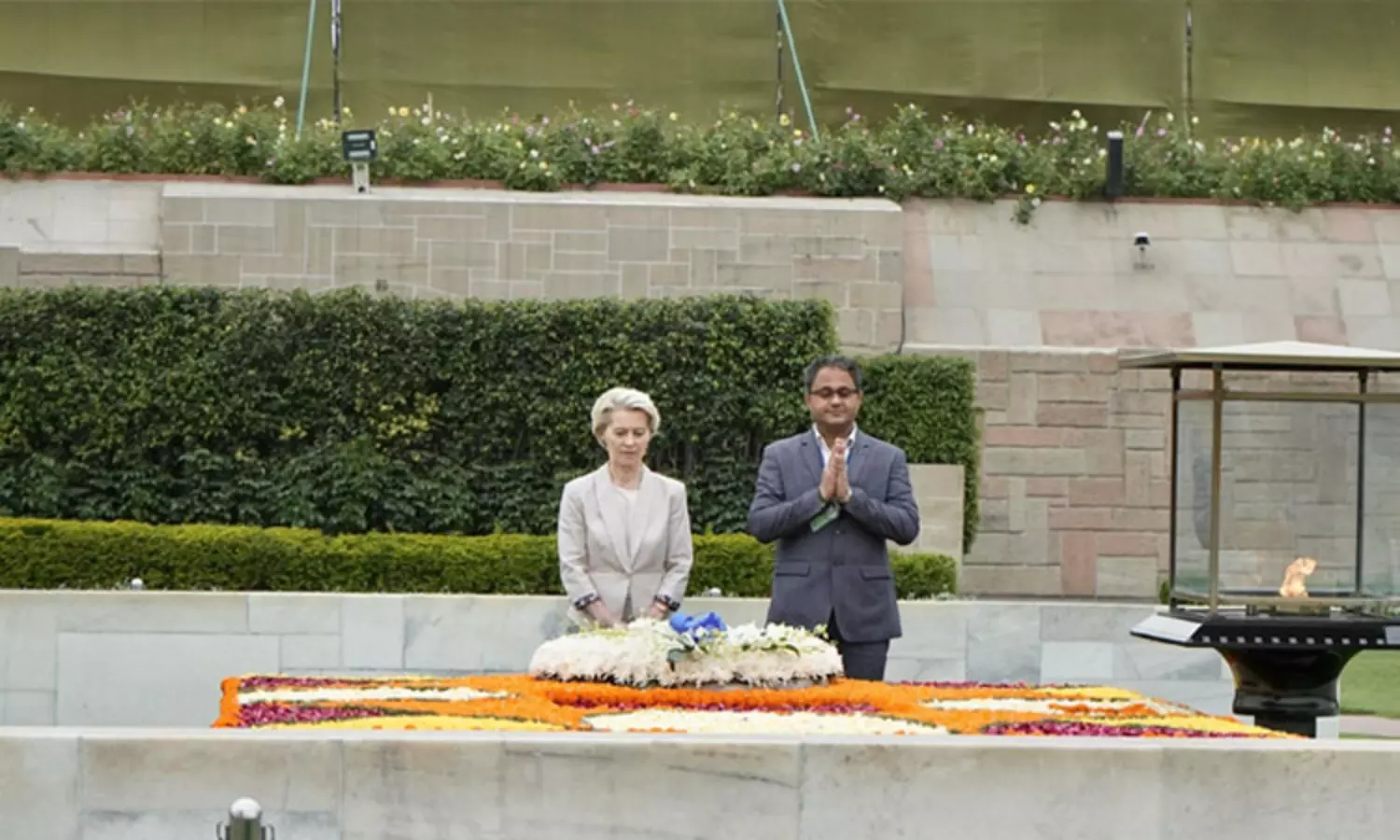 ஐரோப்பிய ஒன்றிய தலைவர் இந்தியாவுக்கு வருகை; மகாத்மா காந்தி சமாதியில் அஞ்சலி