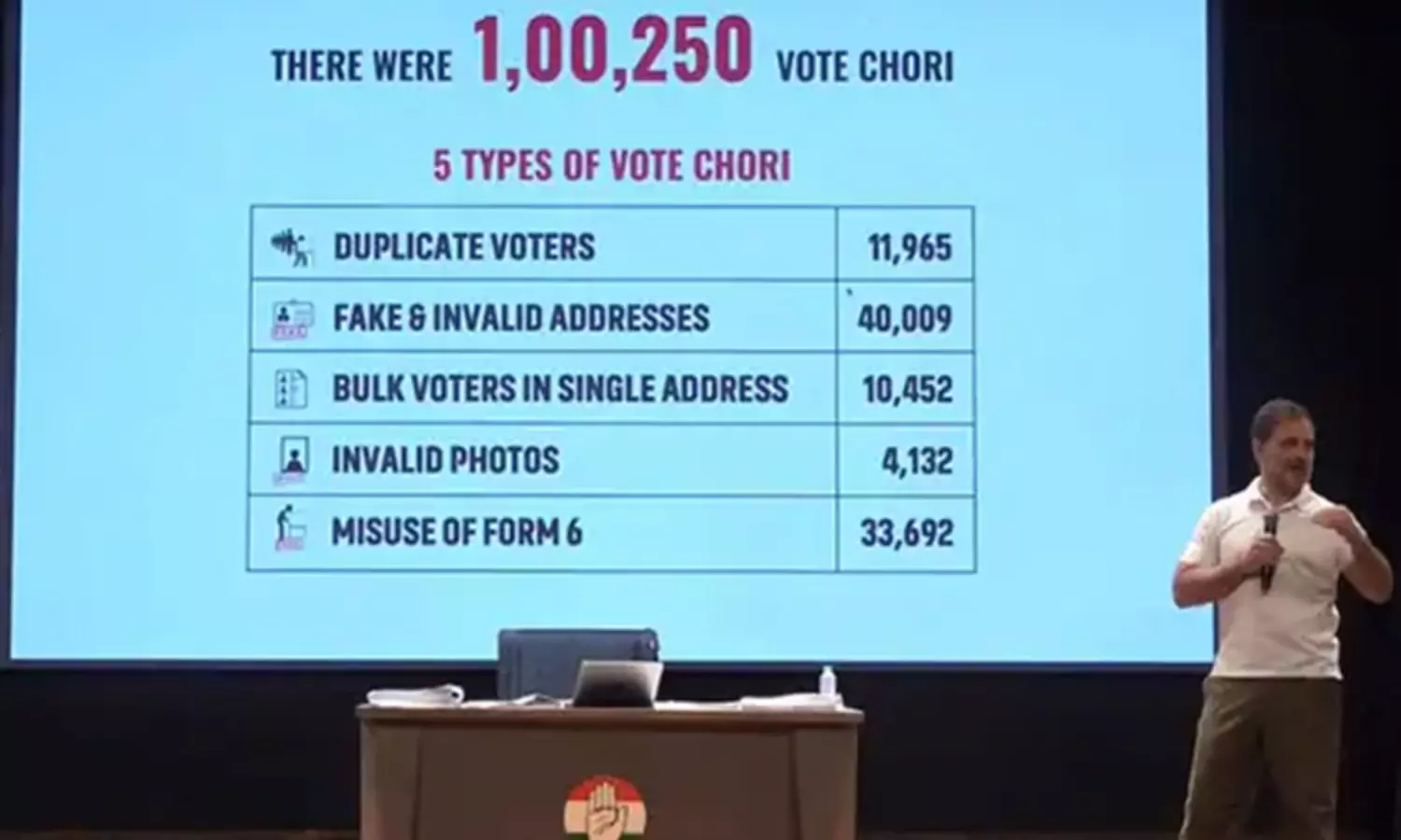 இந்நிலையில், நாடாளுமன்ற மக்களவை எதிர்க்கட்சி தலைவரான ராகுல் காந்தி இன்று பரபரப்பு குற்றச்சாட்டு ஒன்றை கூறினார். அதில், கர்நாடகாவில் 1 லட்சத்து 250 வாக்குகளில் திருட்டுத்தனம் நடந்துள்ளது என குற்றச்சாட்டாக கூறினார்.