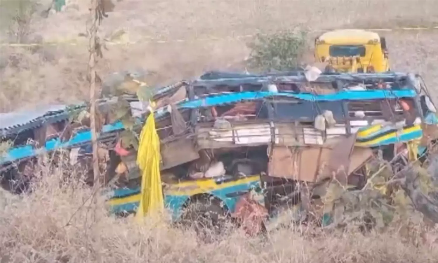 மராட்டிய மாநிலம் திரிம்பகேஷ்வரில் இருந்து 48 யாத்ரீகர்களை ஏற்றிக்கொண்டு குஜராத்தில் உள்ள துவாரகாவுக்கு பஸ் சென்றுகொண்டிருந்தது.
