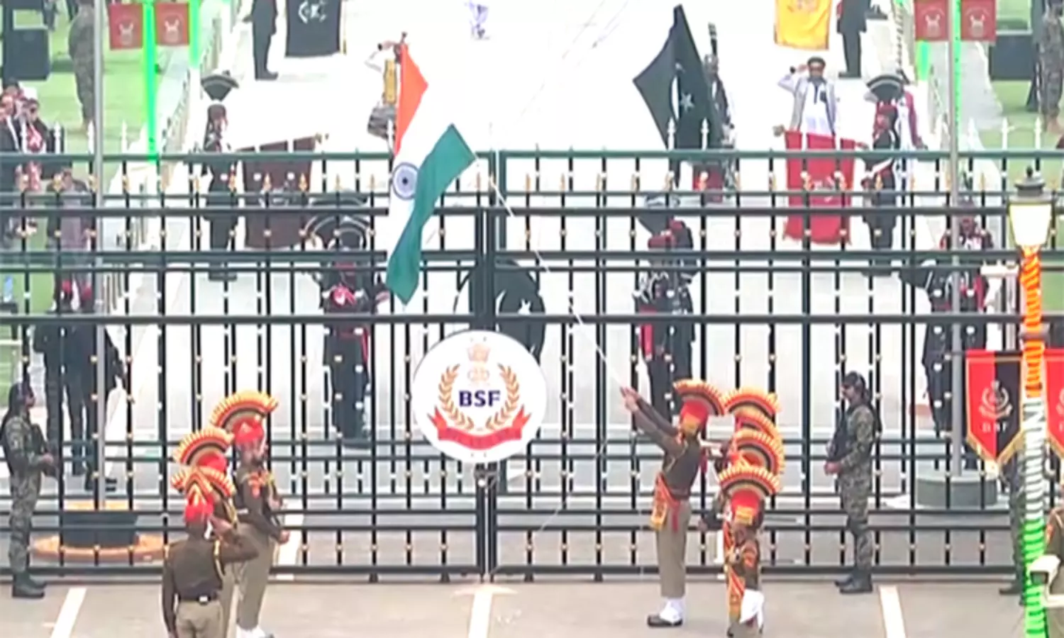 அட்டாரி-வாகா எல்லையில் கொடியிறக்கும் நிகழ்ச்சி - ஆயிரக்கணக்கானோர் பங்கேற்பு
