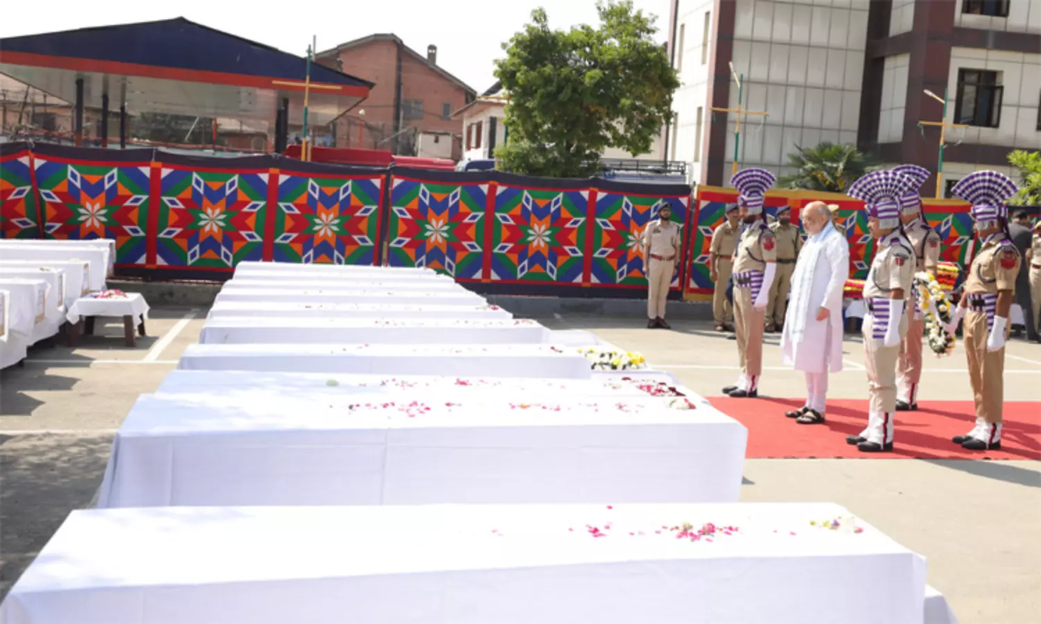 பயங்கரவாத தாக்குதலில் உயிரிழந்தவர்களின் உடல்களுக்கு அமித்ஷா நேரில் அஞ்சலி செலுத்தினார்.;