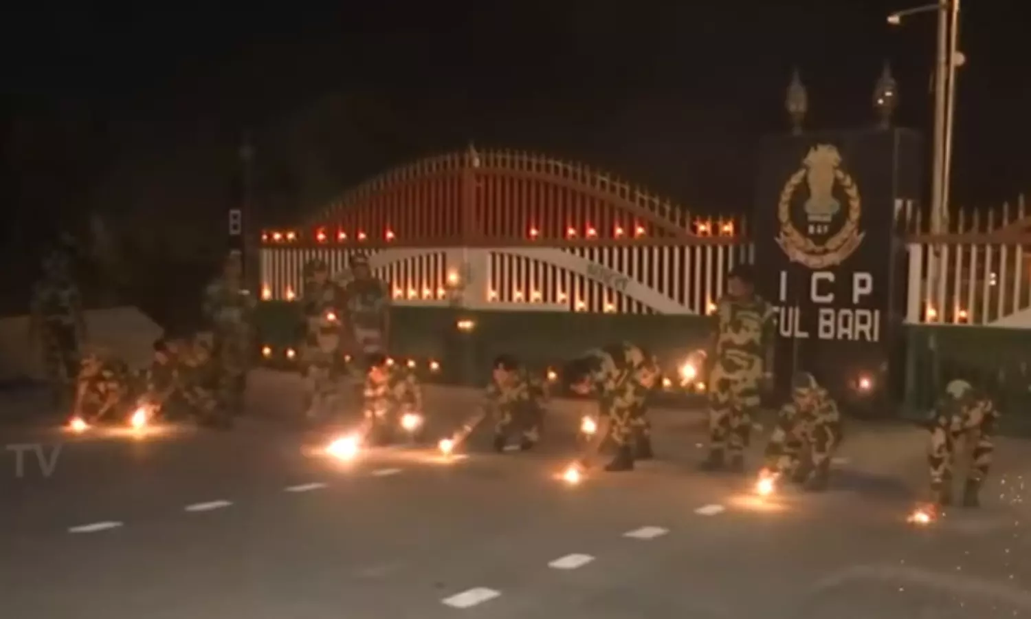வங்கதேச எல்லையில் பட்டாசு வெடித்து தீபாவளி கொண்டாடிய இந்திய ராணுவத்தினர்