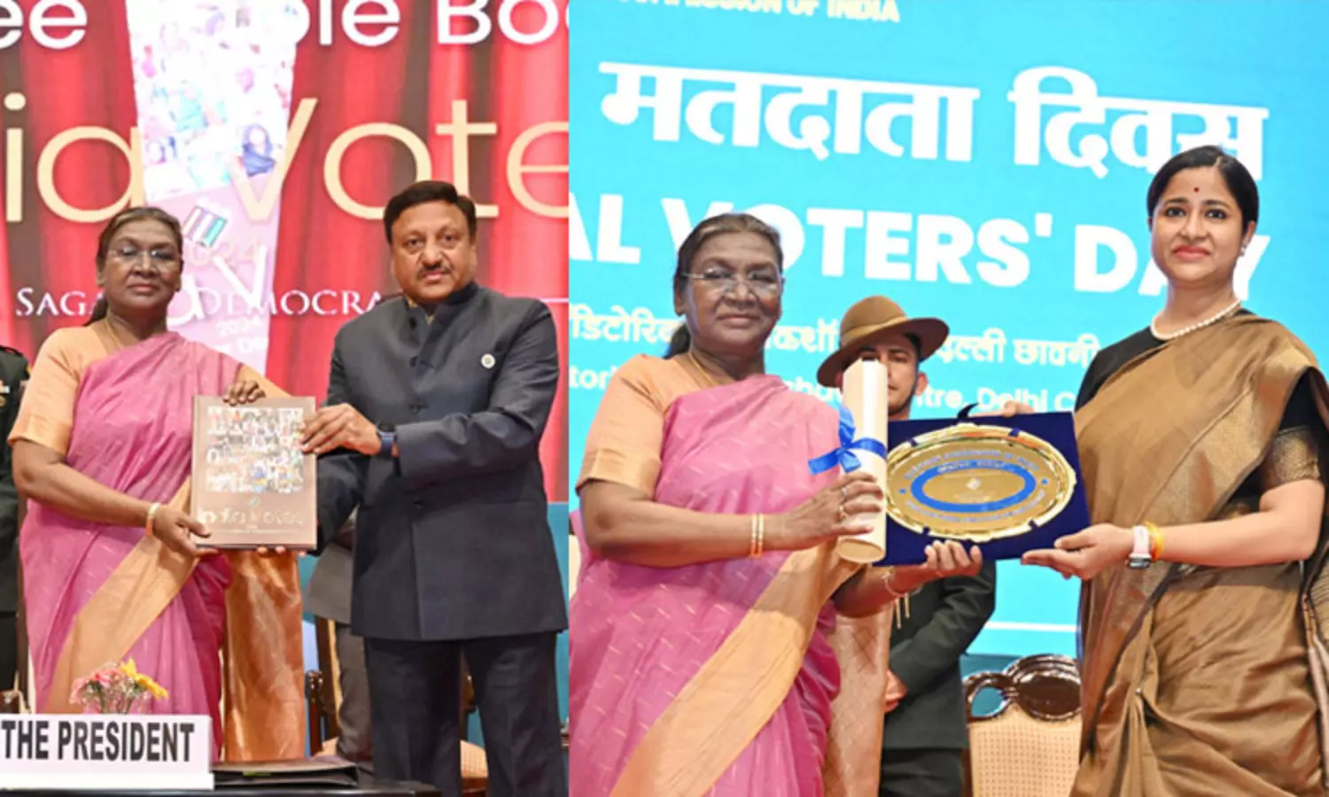 டெல்லியில் 15-வது தேசிய வாக்காளர்கள் தினத்தில், சிறந்த தேர்தல் நடைமுறை விருதுகளை ஜனாதிபதி முர்மு நேற்று வழங்கினார்.;
