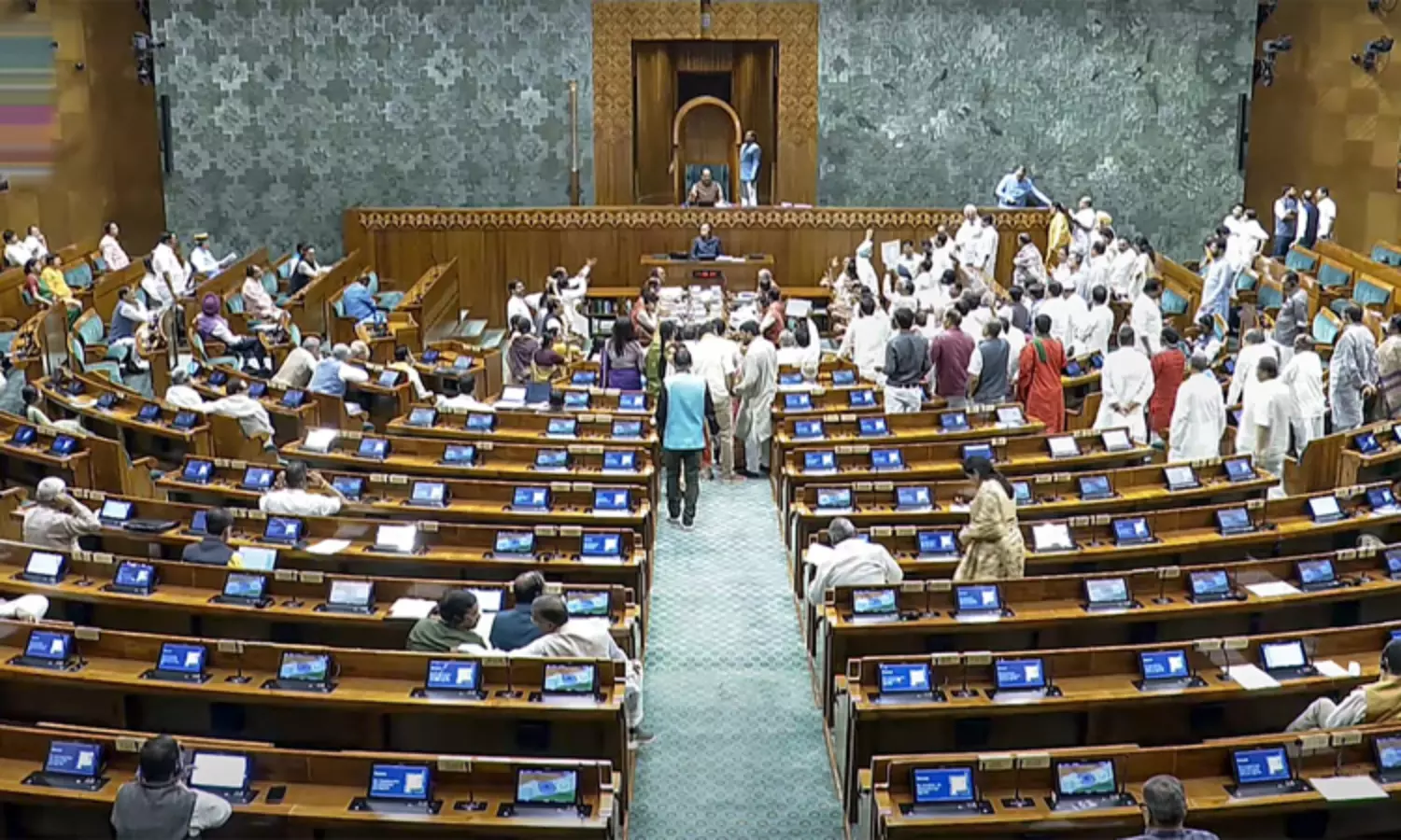 மக்களவை சபாநாயகர் ஓம்.பிர்லா பலமுறை எச்சரித்தும் எதிர்க்கட்சி எம்.பி.,க்கள் கடும் அமளியில் ஈடுபட்டனர். போராட்டம் நடத்தும் உறுப்பினர்கள் கோஷங்களை எழுப்புவதை நிறுத்திவிட்டு தங்கள் இருக்கைகளுக்குத் திரும்ப வேண்டும். நீங்கள் (போராட்டம் நடத்தும் உறுப்பினர்கள்) பிரச்சினைகளைப் பற்றி விவாதிக்க விரும்பவில்லையா?என்று அவர் கூறினார், மேலும் மக்கள் உங்களை சபையில் கோஷமிடத்தான் தேர்ந்தெடுத்தார்களா என்று கேட்டார். சபை பிரச்சினைகளைப் பற்றி விவாதிப்பதற்கானது, உறுப்பினர்களின் நடத்தை பொருத்தமானதல்ல என்று கூறி அவையை பிற்பகல் ௨ மணி வரை சபாநாயகர் ஓம்.பிர்லா ஒத்திவைத்தார்.
