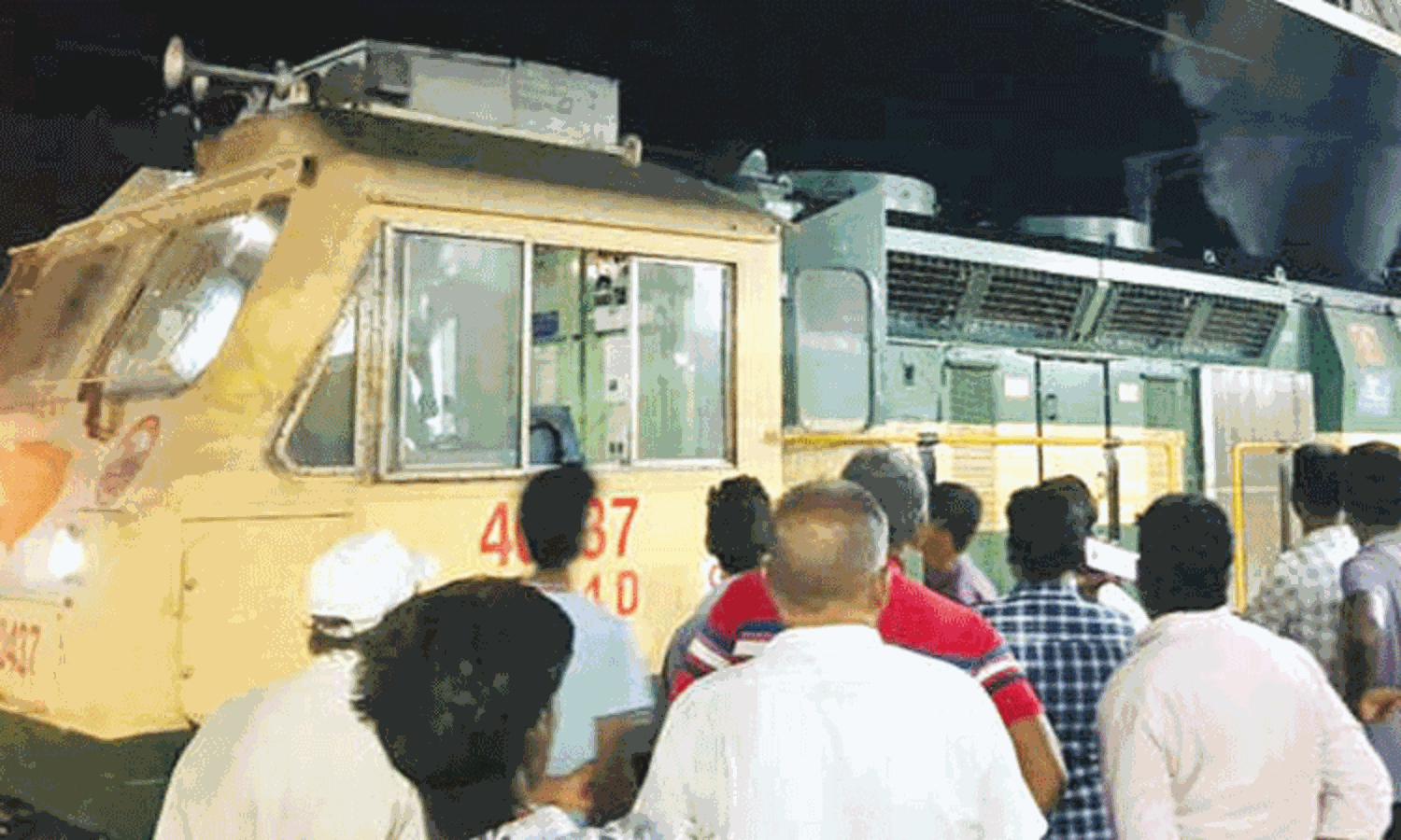 யில்வே ஊழியர்கள் விரைந்து வந்து என்ஜின் பழுதை சரிசெய்யும் பணியில் ஈடுபட்டனர்.;