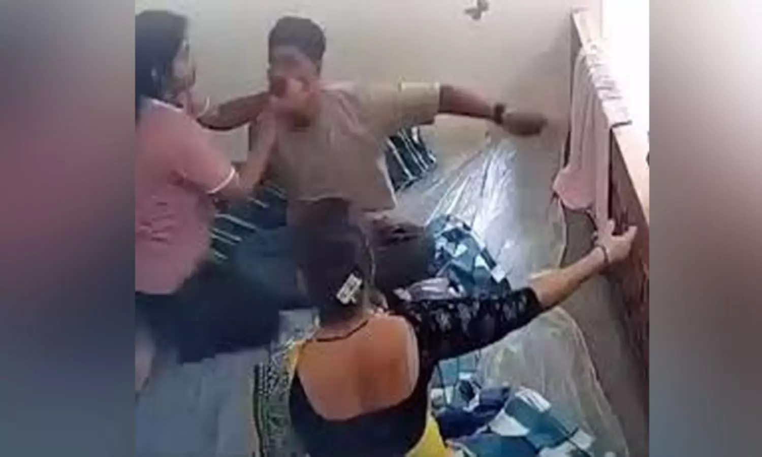 லோகேஷ் மீது அமர்ந்து முகத்தில் பலமாக உதைத்தாள். இந்தகாட்சிகள் அங்கிருந்த கேமராவில் பதிவாகின. தனக்கு தினந்தோறும் மனைவி, மாமியார் கொடுமை செய்வதாக லோகேஷ் தான் அடிவாங்கும் வீடியோவை சமூக வலைதளங்களில் வெளியிட்டார். மேலும் இது குறித்து அங்குள்ள போலீஸ் நிலையத்துக்கு சென்று புகார் அளித்தார். தனது மனைவி மற்றும் மாமியார் தினமும் இரவில் என்னை பாலியல் ரீதியாக துன்புறுத்துவதாக கண்ணீர் மல்க புகார் அளித்துள்ளார். மேலும் அவர்களிடம் இருந்து தன்னை பாதுகாக்குமாறு போலீசாரிடம் கெஞ்சி உள்ளார். இந்த வீடியோ சமூக வலைதளங்களில் வைரலாகி வருகிறது. இந்த சம்பவத்தில் எப்படி நடவடிக்கை எடுப்பது என்பது குறித்து மூத்த போலீஸ் அதிகாரிகள் விசாரணை நடத்தி வருகின்றனர்.