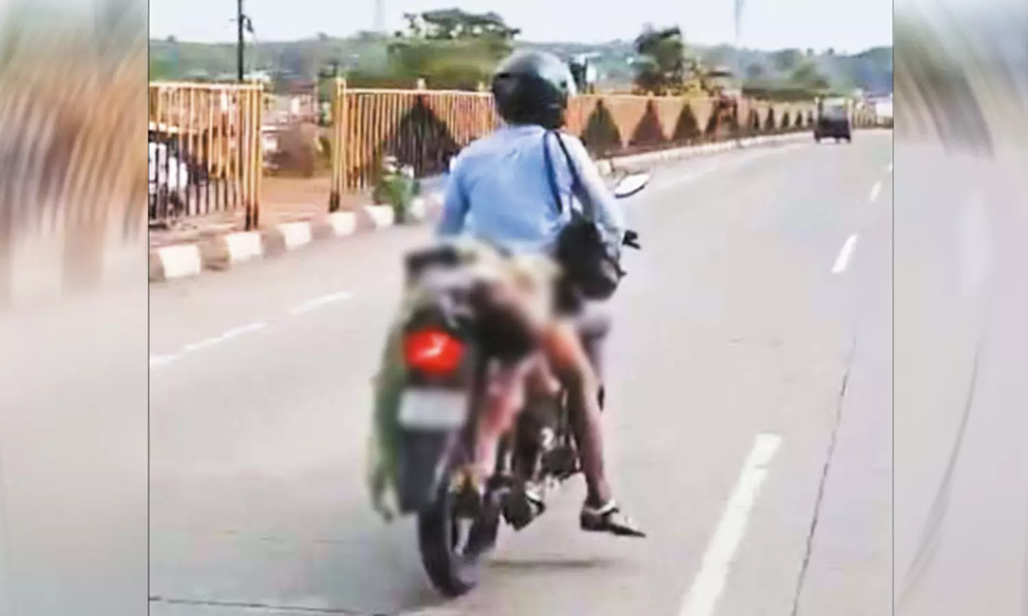 மராட்டிய மாநிலம் நாக்பூர் குமாரி சுங்கச்சாவடி அருகில் மோட்டார் சைக்கிள் பின் இருக்கையில் வாலிபர் ஒருவர், பெண்ணின் உடலை கட்டி வைத்து சர்வசாதாரணமாக சென்று கொண்டு இருந்தார். இதைப்பார்த்து அங்கு இருந்த போலீசார் அதிர்ச்சி அடைந்தனர். அவர்கள் மோட்டார் சைக்கிளை நிறுத்த முயன்றனர். ஆனால் வாலிபர் நிற்காமல் சென்றார்.