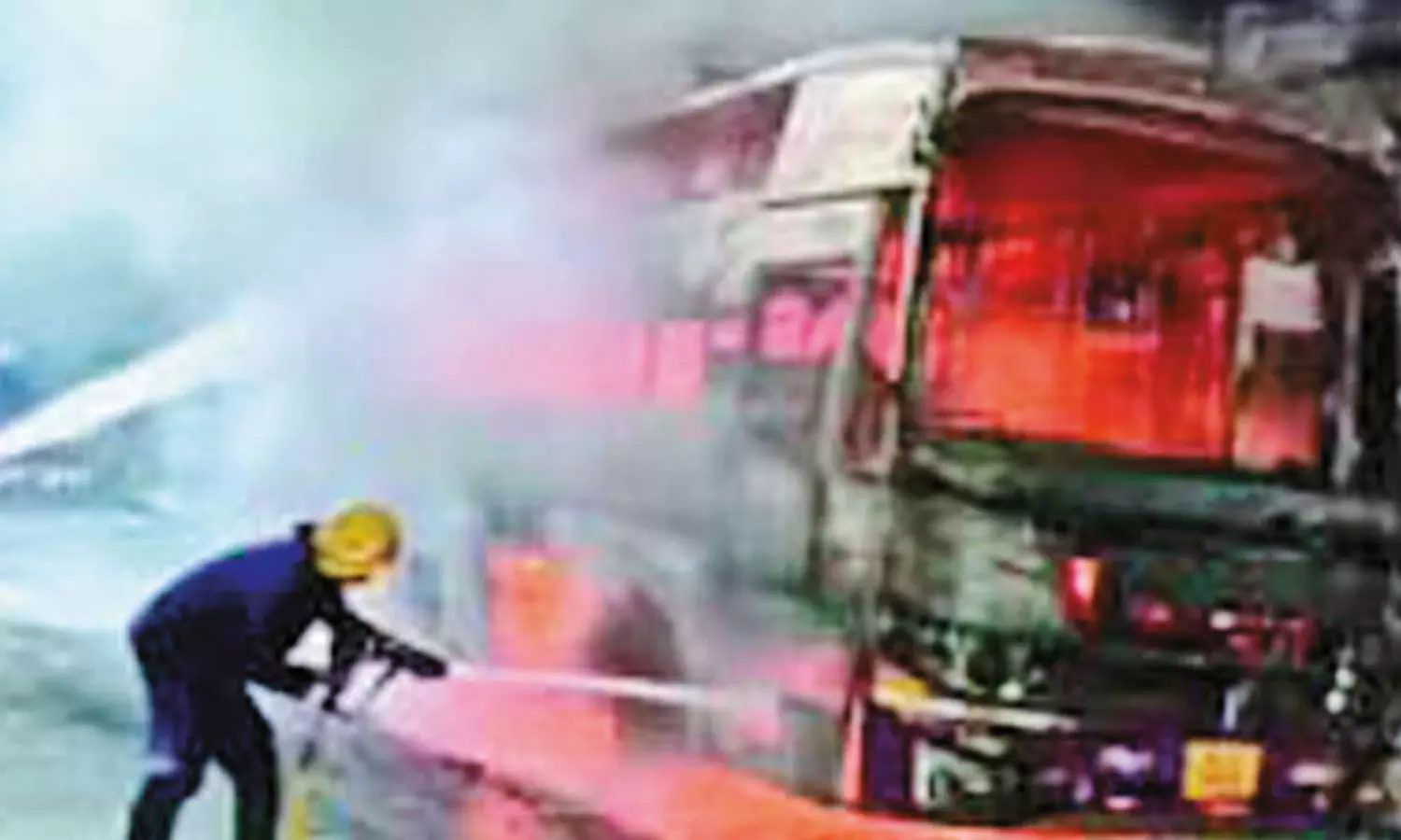 ஆம்னி பஸ் தீப்பிடித்து எரிந்ததால் பரபரப்பு - 44 பயணிகளின் நிலை என்ன?