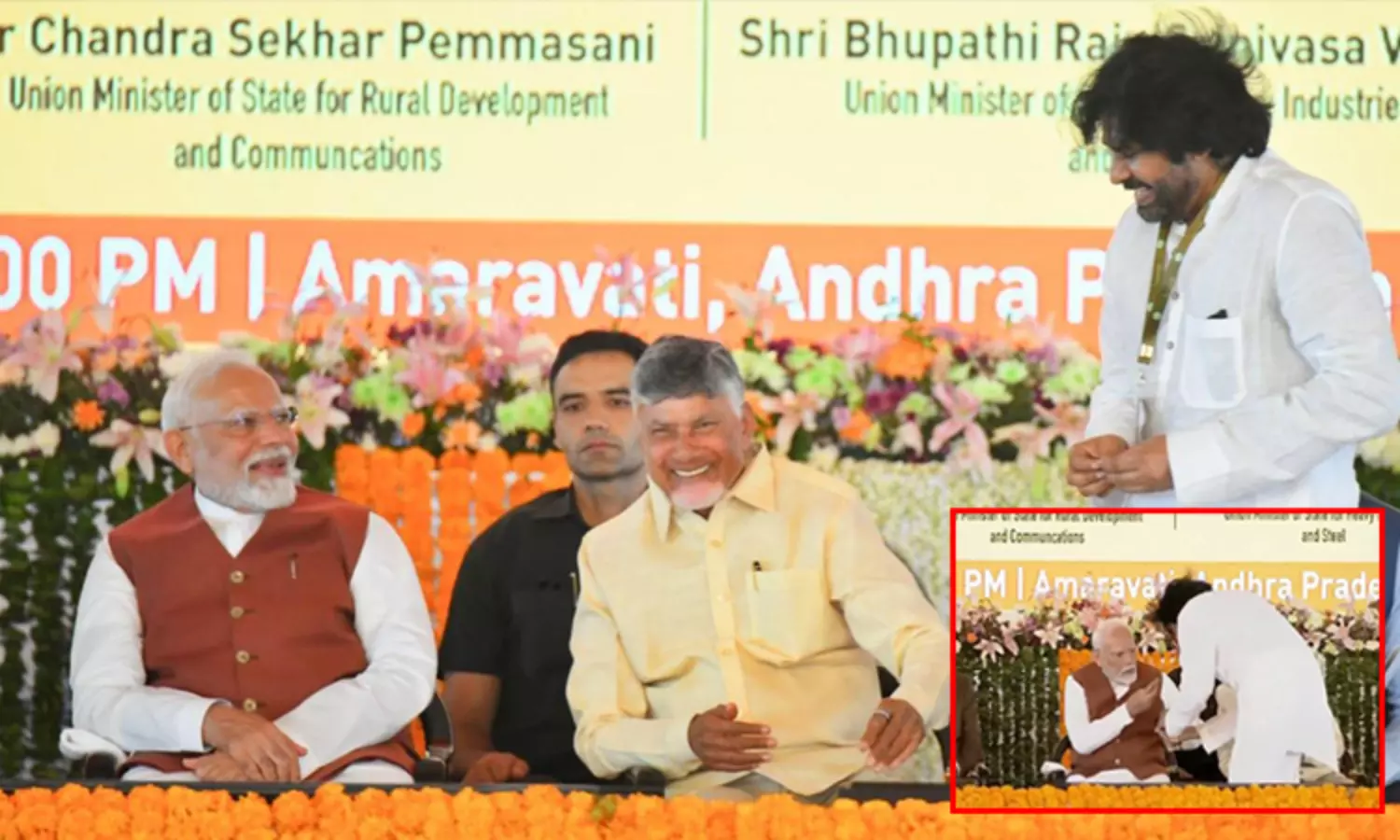இந்த நிகழ்வுக்கு முன்பு, பவன் கல்யாண் அமராவதியில் நடந்த பொது கூட்டத்தில் பொதுமக்கள் முன்னிலையில் பேசினார். அப்போது அவர், பஹல்காம் பயங்கரவாத தாக்குதல் போன்ற தேசிய அளவிலான நெருக்கடியான சூழலில், இந்த நிகழ்ச்சியில் கலந்து கொள்ள நேரம் செலவிட்டதற்காக பிரதமர் மோடிக்கு நன்றி தெரிவித்து கொண்டார்.