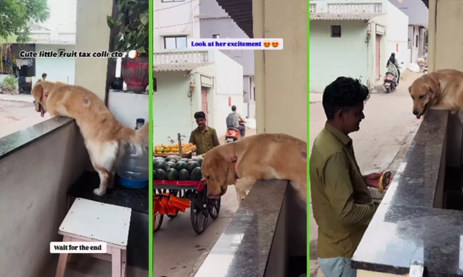 ஒழுங்கா வரி கொடுத்துட்டு போங்க... நாயுடன் பழ விற்பனையாளரின் பாசப்பிணைப்பு; வைரலான வீடியோ