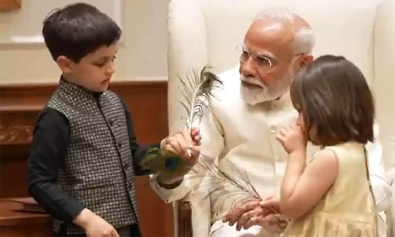 அமெரிக்க துணை ஜனாதிபதி குழந்தைகளுக்கு மயில் இறகுகளை பரிசளித்த பிரதமர் மோடி