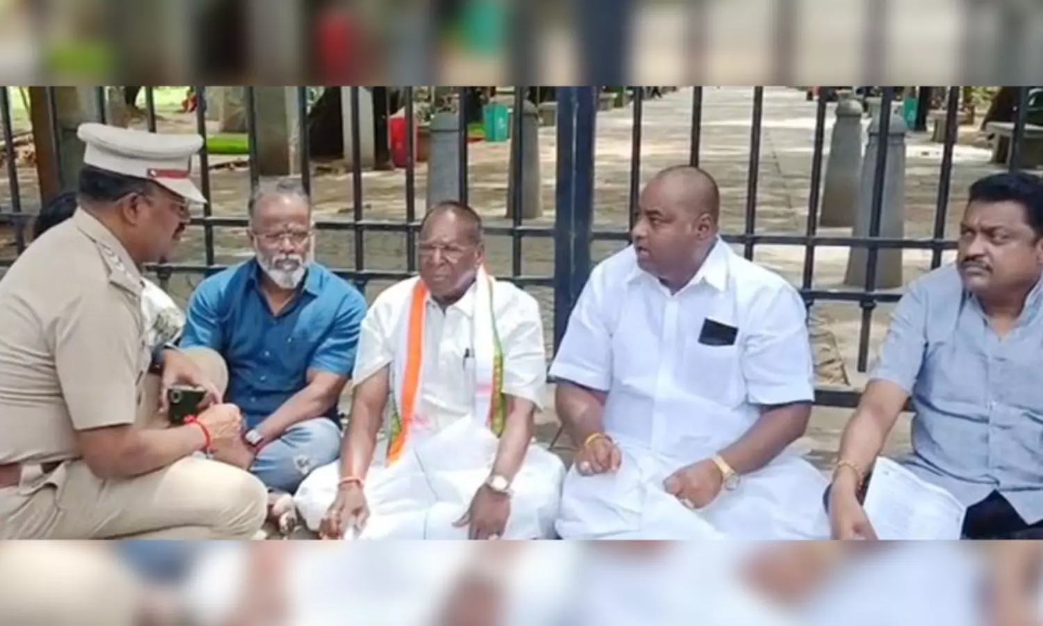 புதுச்சேரி: கவர்னர் அலுவலகம்முன் முன்னாள் முதல்-மந்திரி உண்ணாவிரத போராட்டம்