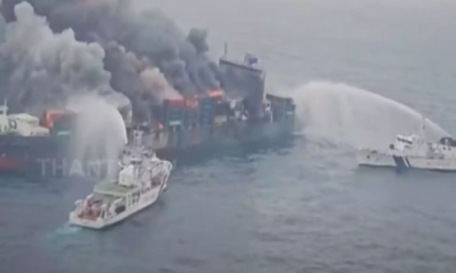 இலங்கை தலைநகர் கொழும்புவில் இருந்து மும்பை நோக்கி கடந்த 9-ந்தேதி 'எம்.வி. வான ஹை 503' என்ற சிங்கப்பூர் சரக்கு கப்பல் சென்று கொண்டிருந்தது. அந்த சரக்கு கப்பல் கேரள மாநிலம் கண்ணூர் மாவட்டம் அழிக்கல் கடற்கரை அருகே நடுக்கடலில் சென்று கொண்டிருந்தபோது திடீரென்று கப்பலின் ஒரு பகுதி தீப்பிடித்து எரிந்தது.