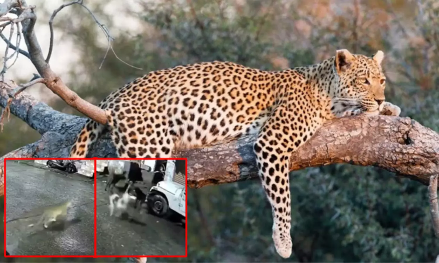 சிறுத்தைப்புலியை, பூனை என நினைத்து துரத்திய தெரு நாய்கள்; அடுத்து... வைரலான வீடியோ