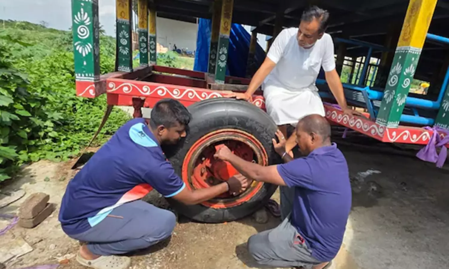 அதனால், எம்.ஆர்.எப். நிறுவனத்திடம் இதுபற்றி அணுகினோம். இறுதியாக, நடப்பு ஆண்டில் அவர்கள் பதிலளித்தனர். சமீபத்திய பாகிஸ்தான் மற்றும் இந்தியா இடையேயான பதற்றங்களுக்கு மத்தியில், சுகோய் விமானத்தின் டயர்கள் தேரில் பயன்படுத்தப்பட்டு உள்ளன.