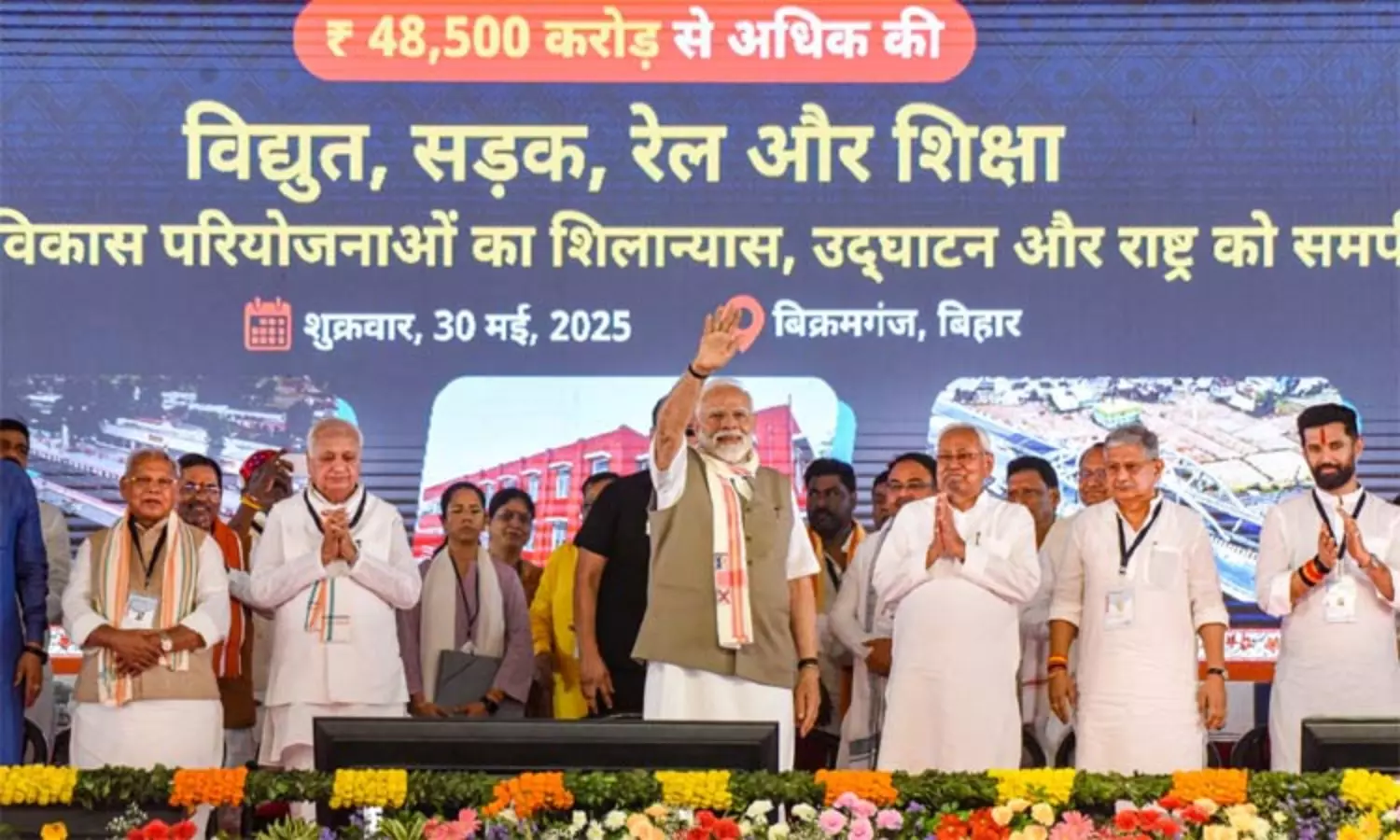 பீகார் மாநிலம் காரகட் நகரில் நடந்த அரசு நிகழ்ச்சியில் பிரதமர் மோடி இன்று பங்கேற்றார். இந்த நிகழ்ச்சியில் மொத்தம் 50 ஆயிரம் கோடி ரூபாய் மதிப்பிலான நிறைவு பெற்ற திட்டப்பணிகளை திறந்து வைத்து, புதிய திட்டப்பணிகளுக்கு பிரதமர் மோடி அடிக்கல் நாட்டினார். இதில், சாலை , அனல்மின் நிலைய கட்டுமான பணிகளும் அடக்கம்.