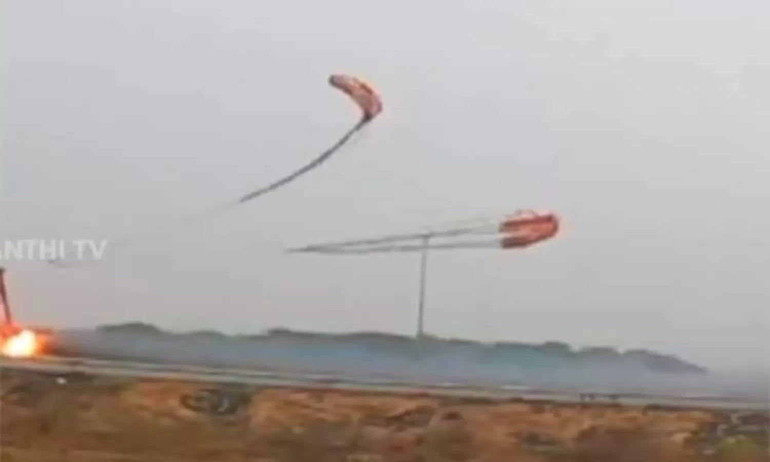 விண்கலன் பாதுகாப்பாக தரையிரங்குவதை உறுதி செய்யும் வகையில் பாராசூட் சோதனை மேற்கொள்ளப்பட்டது.;