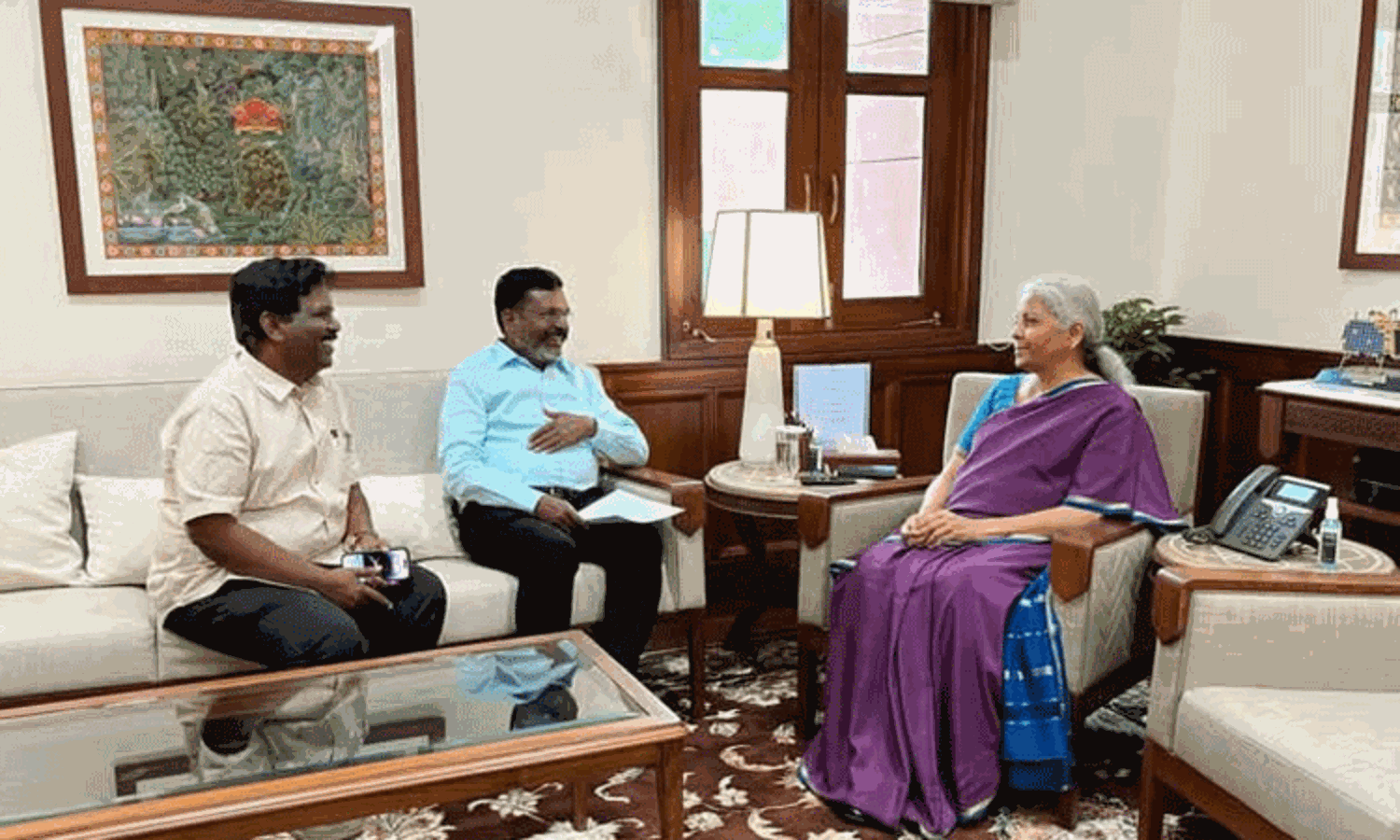 மத்திய நிதி மந்திரி நிர்மலா சீதாராமனிடம் மனு அளித்த திருமாவளவன்
