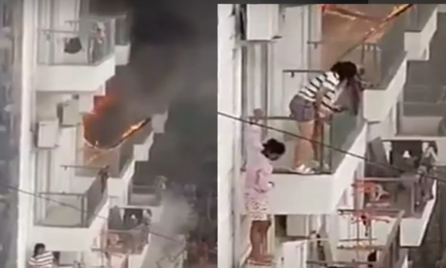 உத்தர பிரதேசம்: பெண்கள் விடுதியில் பயங்கர தீ விபத்து... பால்கனி வழியாக ஏறி குதித்த மாணவிகள்