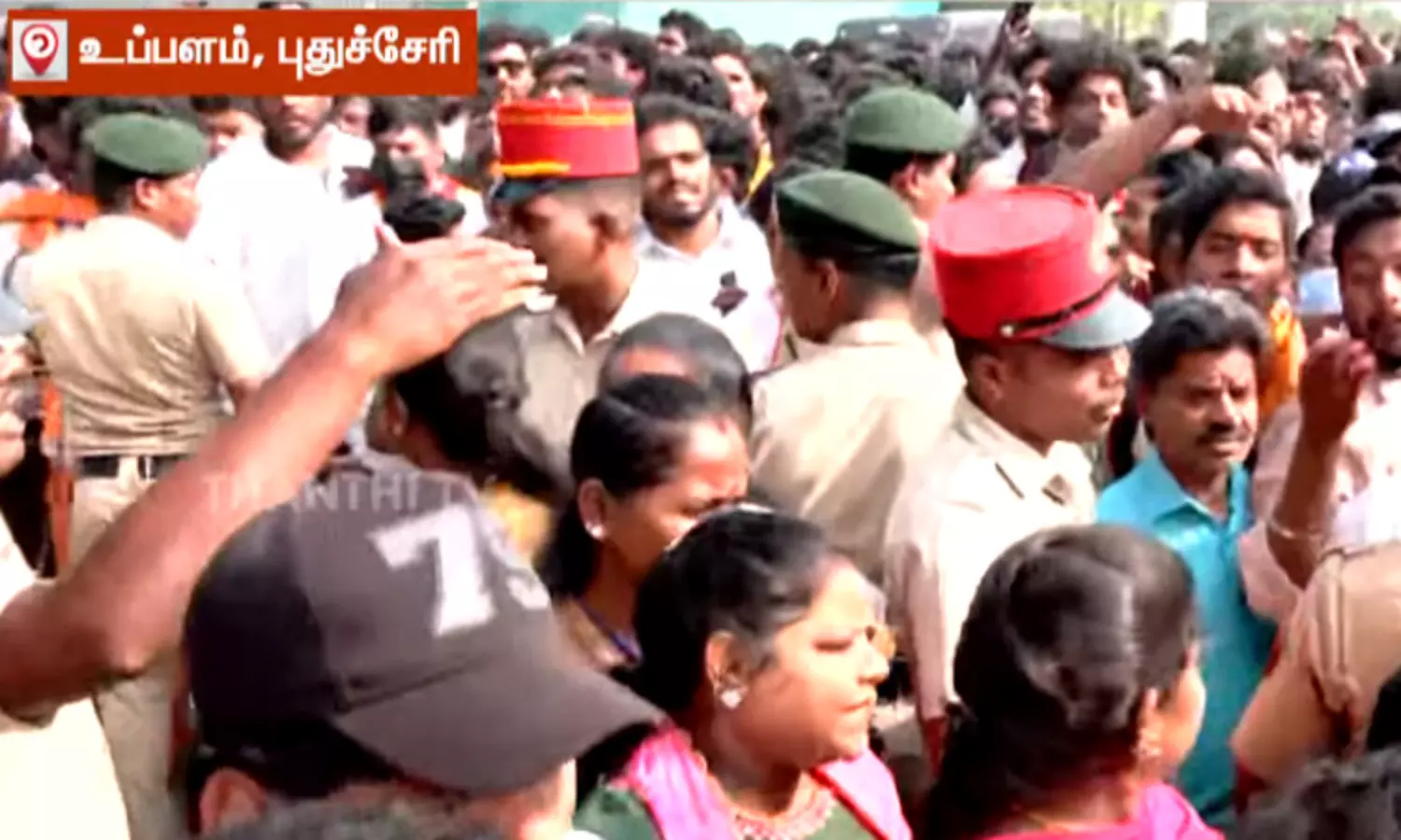 இந்த நிலையில், கூட்டம் நடைபெற உள்ள இடத்தில் தொண்டர்கள் முண்டியடித்ததால் பரபரப்பு ஏற்பட்டது. பாஸ் இல்லாத தொண்டர்களும் கூட்டம் நடைபெறும் இடத்திற்குள் நுழைய முயன்றதால், போலீசார் அவர்களை தடுத்து நிறுத்தினர். இதனால், போலீசாருக்கும் தவெகவினருக்கும் இடையில் லேசான தள்ளுமுள்ளும் ஏற்பட்டது. விஜயின் பொதுக்கூட்டத்தால் புதுவையில் பல்வேறு பகுதிகளில் கடும் போக்குவரத்து நெரிசல் ஏற்பட்டுள்ளது.
