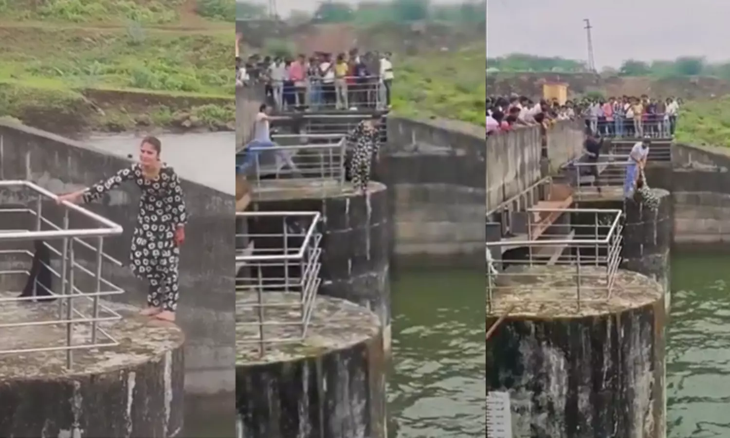 அணையில் குதித்து தற்கொலைக்கு முயன்ற இளம்பெண்; துணிச்சலாக செயல்பட்ட இளைஞர்: வைரலான வீடியோ