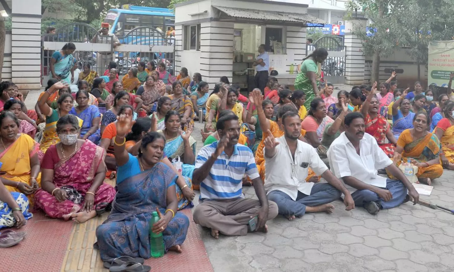 புதுச்சேரி ரொட்டி பால் ஊழியர்கள் தங்களுக்கு நிலுவை சம்பளத்தை உடனடியாக வழங்க வேண்டும், சட்டமன்றத்தில் முதல்-அமைச்சர் ரங்கசாமி அறிவித்த குறைந்தபட்ச ஊதியம் ரூ.10 ஆயிரத்தை வழங்க வேண்டும் என்பது உள்பட பல்வேறு கோரிக்கைகளை வலியுறுத்தி வருகின்றனர். அவர்கள் தங்கள் கோரிக்கைகளை வலியுறுத்தி இன்று கல்வித்துறை அலுவலக நுழைவாயில் கேட்டை இழுத்து மூடி முற்றுகையிட்டு போராட்டம் நடத்தினர். போராட்டத்திற்கு ரொட்டி பால் ஊழியர்கள் சங்க ஒருங்கிணைப்பாளர் மாறன் தலைமை தாங்கினார். இதில் ஊழியர்கள் பலர் கலந்துகொண்டனர். அவர்கள் கல்வித்துறைக்கு எதிராக கோஷங்கள் எழுப்பினர்.