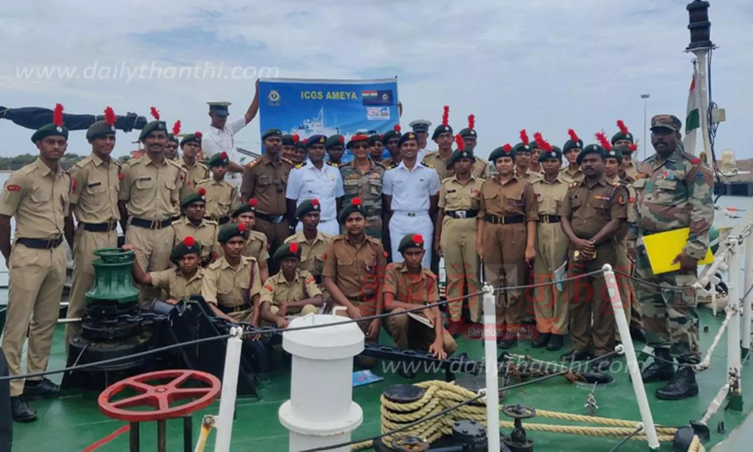 கடலோர காவல் படை கப்பலை பார்வையிட்ட என்.சி.சி. மாணவர்கள்