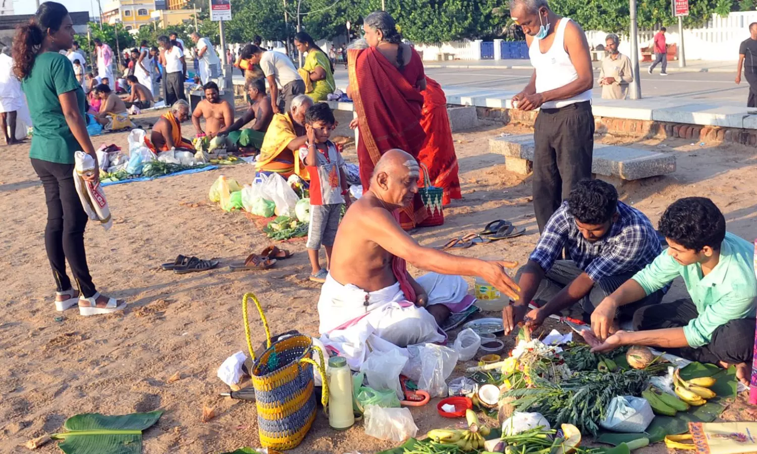 மகாளய அமாவாசையை முன்னிட்டு புதுவை கடற்கரை, திருக்காஞ்சியில் முன்னோர்களுக்கு தர்ப்பணம் வழங்கப்பட்டது.