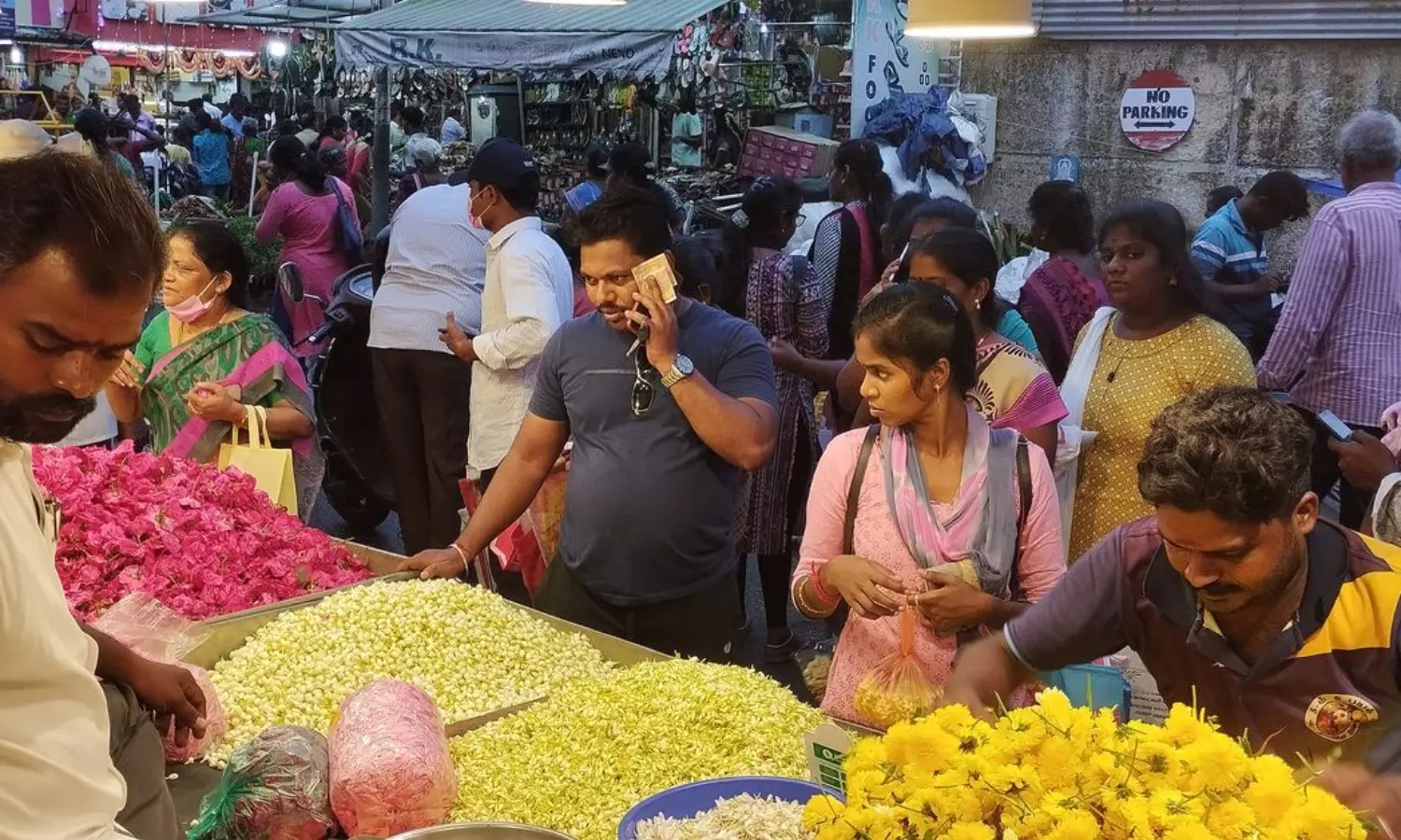 பூக்கள் விலையும் விலையும் உயர்ந்திருந்தது. ரூ.600-க்கு விற்பனையான ஒரு கிலோ மல்லிகைப்பூ இன்று ரூ.1,000-க்கு விற்பனையானது. ஒரு கிலோ அரும்பு - ரூ1,000, சாமந்தி - ரூ200, ரோஜா -ரூ.250-க்கு விற்பனை செய்யப்பட்டது.