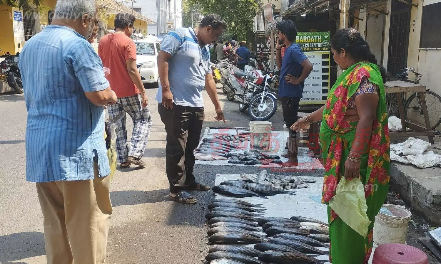 மரப்பாலம், நெல்லித்தோப்பு, வழுதாவூர் ரோடு, செஞ்சி சாலை உள்ளிட்ட பல்வேறு பகுதிகளிலும் இந்த மீன்கள் விற்பனை சூடுபிடித்துள்ளது. கட்லா, இரால், ஜிலேபி மீன்கள் அதிக அளவில் விற்பனைக்கு வந்துள்ளன.