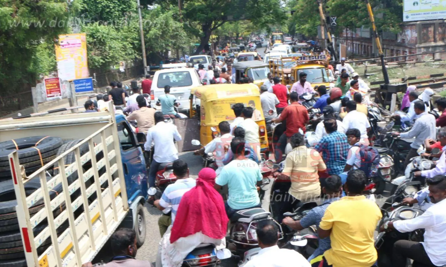 ரெயில்வே கேட் பகுதியில் தொடரும் போக்குவரத்து நெரிசல்