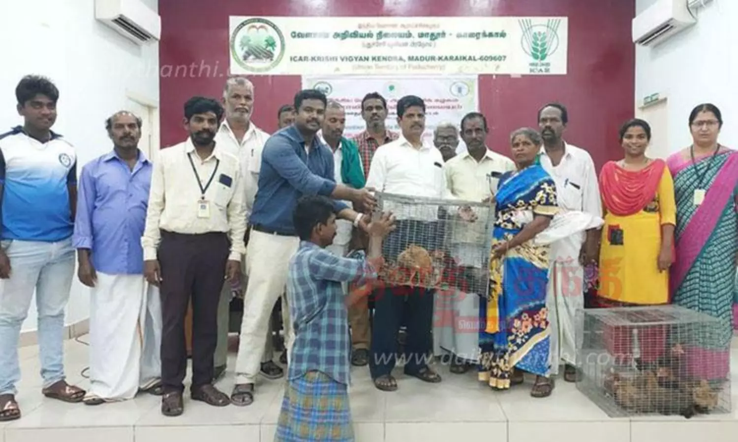 காரைக்காலை அடுத்த மாதூர் வேளாண் அறிவியல் நிலையத்தில், ஐதராபாத்தில் உள்ள இந்திய வேளாண் ஆராய்ச்சி கழகம் மத்திய வறண்ட நில வேளாண் ஆராய்ச்சி நிறுவனத்தின் மூலம் செயல்படுத்தப்படும் தேசிய பருவநிலை மாற்றத்திற்கு உகந்த மீள் தன்மையுள்ள வேளாண் திட்டத்தின் (நிக்ரா) கீழ், அறிவியல் முறையில் கோழி வளர்ப்பு பற்றிய பயிற்சி முகாம் நடத்தப்பட்டது. இம்முகாமை, வேளாண் அறிவியல் நிலையத்தின் முதல்வர் மற்றும் திட்ட ஒருங்கிணைப்பாளர் ஜெயசங்கர் தொடங்கி வைத்தார்.