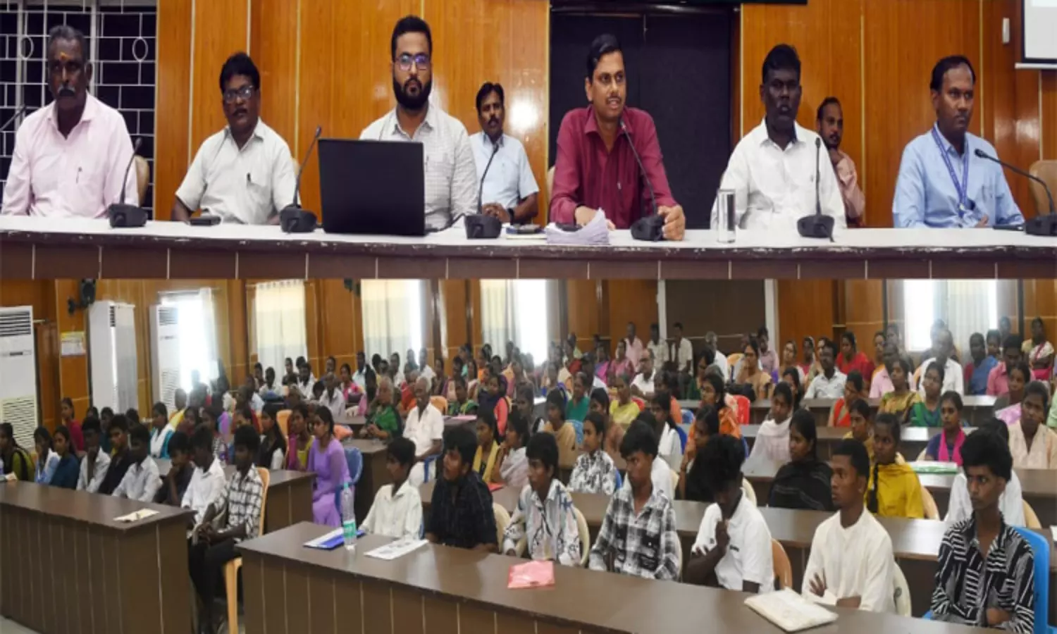 தூத்துக்குடி மாவட்ட கலெக்டர் அலுவலகக் கூட்டரங்கில் நேற்று (3.6.2025) மாவட்டத்தில் உள்ள அரசு, அரசு உதவிபெறும் மற்றும் தனியார் பள்ளிகளில் பயின்று 2024-25-ம் கல்வியாண்டில் பிளஸ் 2 பொதுத்தேர்வில் ஆர்வமுடன் பயின்று தேர்ச்சி பெற்ற தாய் அல்லது தந்தை மற்றும் இருவரையும் இழந்து, உறவினர் அல்லது பாதுகாவலரின் அரவணைப்பில் இருந்துவரும் மாணவ, மாணவியர்களுடன் மாவட்ட கலெக்டர் இளம்பகவத் கலந்துரையாடி, தொழிற்கல்விப் படிப்புகள், கலை மற்றும் அறிவியல் சார்ந்த படிப்புகள், தொழில்நுட்பக் கல்வி, தொழிற்பயிற்சி கல்வி படிப்புகள், கல்லூரிகள் தேர்வு, வேலைவாய்ப்புகள் உள்ளிட்டவை குறித்த உரிய வழிகாட்டுதல்களை வழங்கினார்.