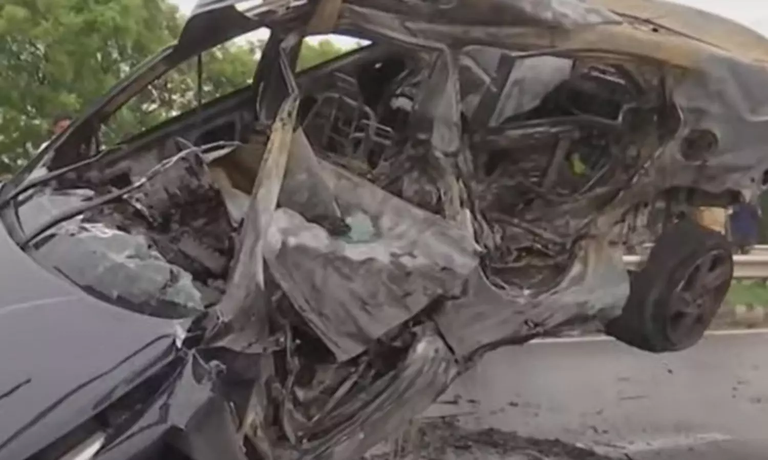 கார் தீப்பற்றி 3 பேர் உயிரிழந்த நிலையில் மேலும் இருவர் காயங்களுடன் மருத்துவமனையில் அனுமதிக்கப்பட்டுள்ளனர்.;